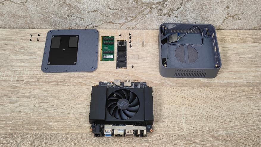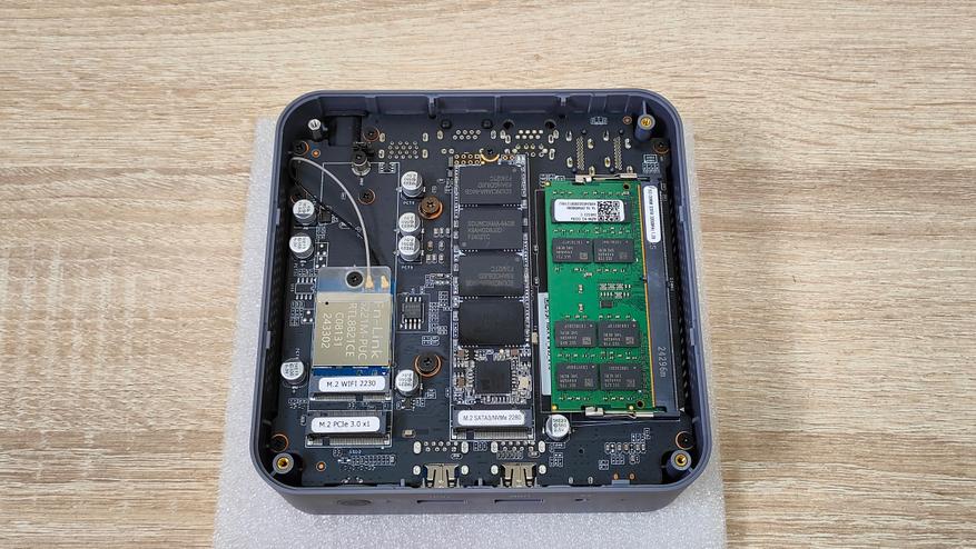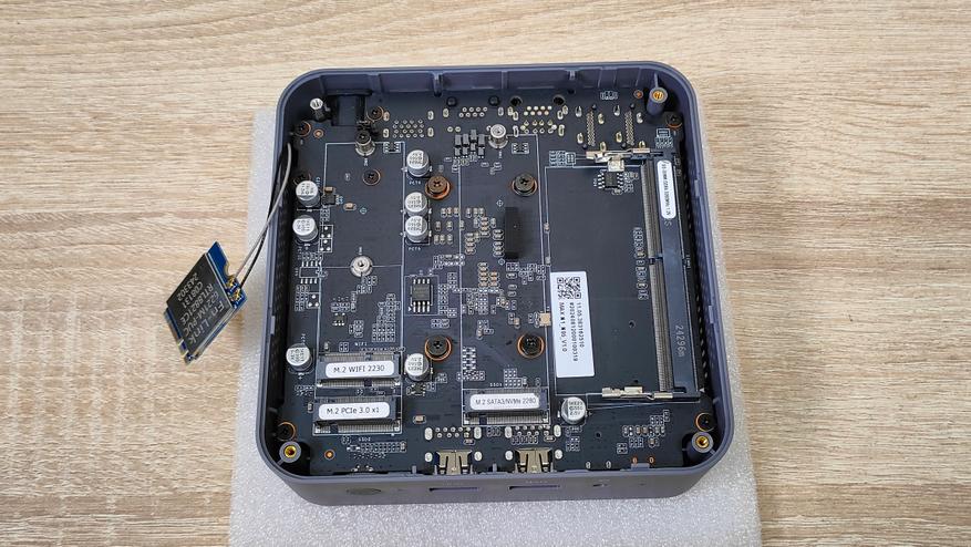 Разборка данного мини-ПК классическая, выкручиваю четыре винта по углам и снимаю крышку, и вижу следующее.