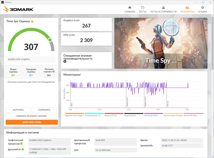 | Процессор | Intel N95: 4 ядра без HT на частоте до 3.4 ГГц,; TDP 15 Вт |