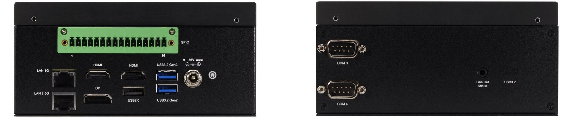 Особенностью новинки стал расширенный набор промышленных интерфейсов. На корпусе размещен 40-контактный разъем GPIO для подключения периферийных устройств, датчиков и исполнительных механизмов. Реализована поддержка последовательных интерфейсов RS232, RS422 и RS485, традиционно применяемых в лабораторном и производственном оборудовании. Видеовыходы представлены портами HDMI 2.1 и DisplayPort 2.1, обеспечивающими подключение нескольких дисплеев. Сетевое взаимодействие организовано через два порта Ethernet со скоростью 2.5 Гбит/с и 1 Гбит/с. Набор USB-портов включает интерфейсы стандартов USB 2.0 и USB 3.2 Gen 2.