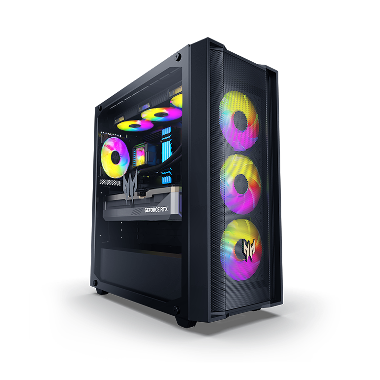 Для сетевых возможностей предусмотрены Killer E3100G Ethernet, Wi-Fi 7 и порты Thunderbolt 4. За охлаждение отвечает жидкостная система с 360-мм радиатором и решение Predator CycloneX 360, которое снижает температуру материнской платы на 9 °C и повышает эффективность на 15%. Корпус объемом 45 л выполнен из закалённого стекла и частично из переработанного пластика, есть подсветка ARGB Pulsar.