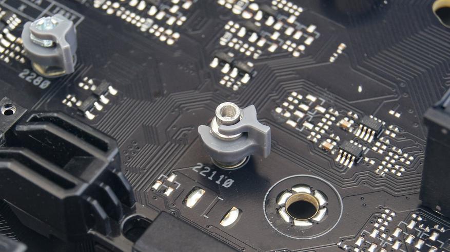 Все M.2-разъемы оснащены Q-Latch — безвинтовой системой фиксации накопителя. Это намного удобнее классических винтов.