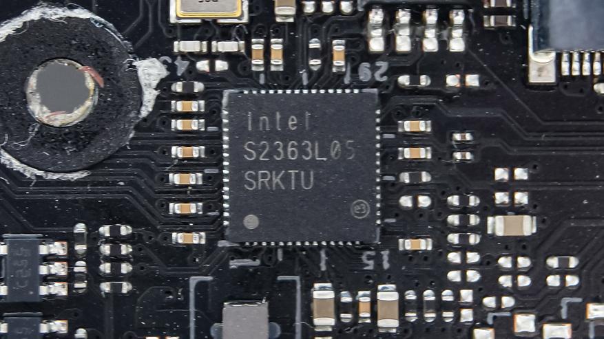 Проводная сеть (до 2,5 Гбит/с) реализована чипом Intel с обозначением S2363L05. Беспроводные интерфейсы связи (Wi-Fi 6E; Bluetooth 5.3) реализованы через Intel AX-211NGW.