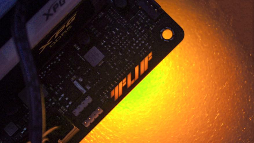 Кстати, о подсветке. Верхний правый угол обозреваемой платы имеет интегрированную подсветку. Ею можно управлять, также как и сторонними устройствами с иллюминацией.