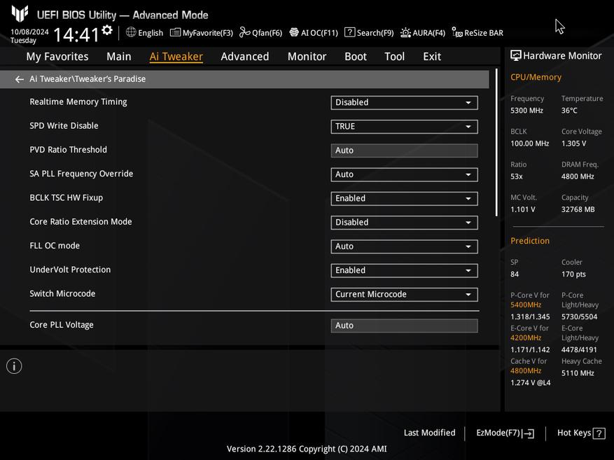 Как водится платам на старшем чипсете настроек много и уместить их описание в рамки обзора материнской платы невозможно. Скажу лишь что основные пункты тонкой доводки системы собраны во вкладке Ai Tweaker, и разделе Tweaker's Paradise в частности.