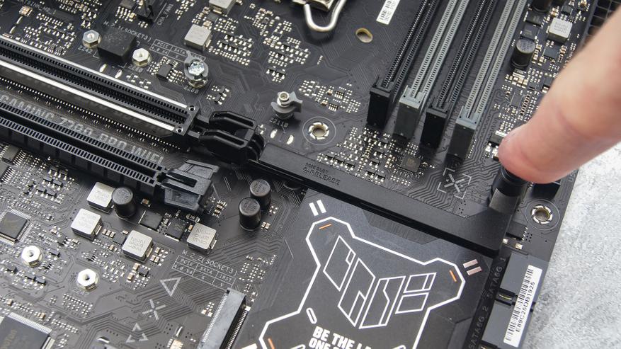 ASUS TUF Gaming Z790-Pro WIFI имеет целых четыре M.2. Каждый из них работает по интерфейсу PCIe 4.0 x4, а один дополнительно поддерживает накопители с интерфейсом SATA. Два из четырех слотов M.2 поддерживает длинные накопители, имеющие форм-фактор 22110.