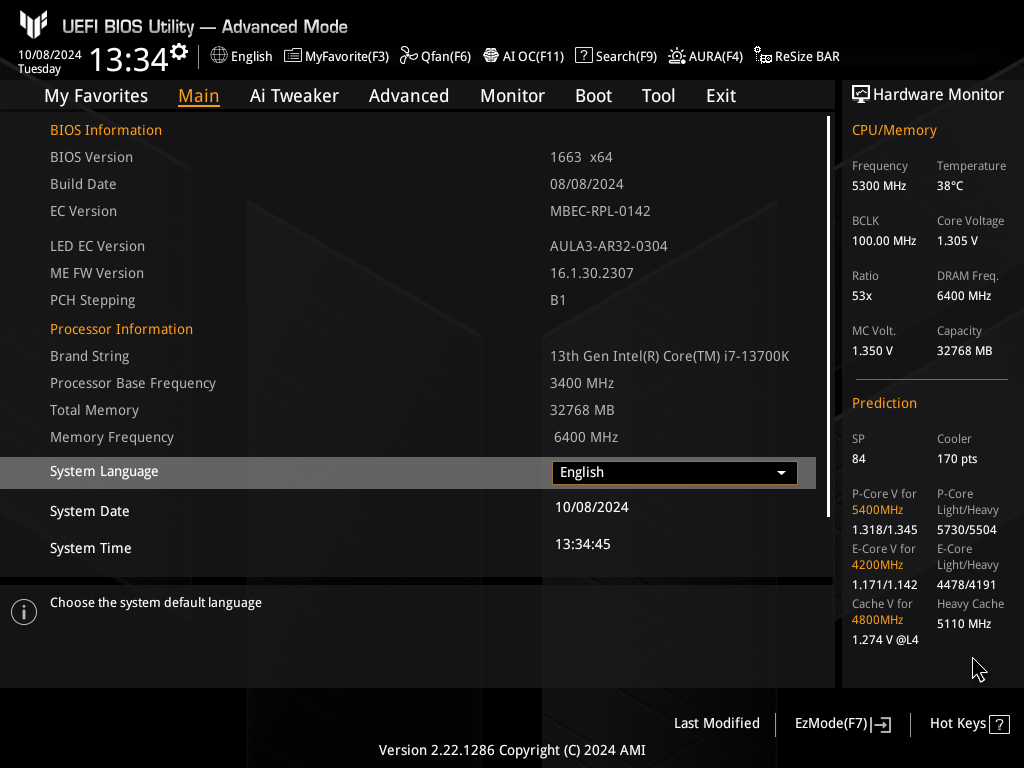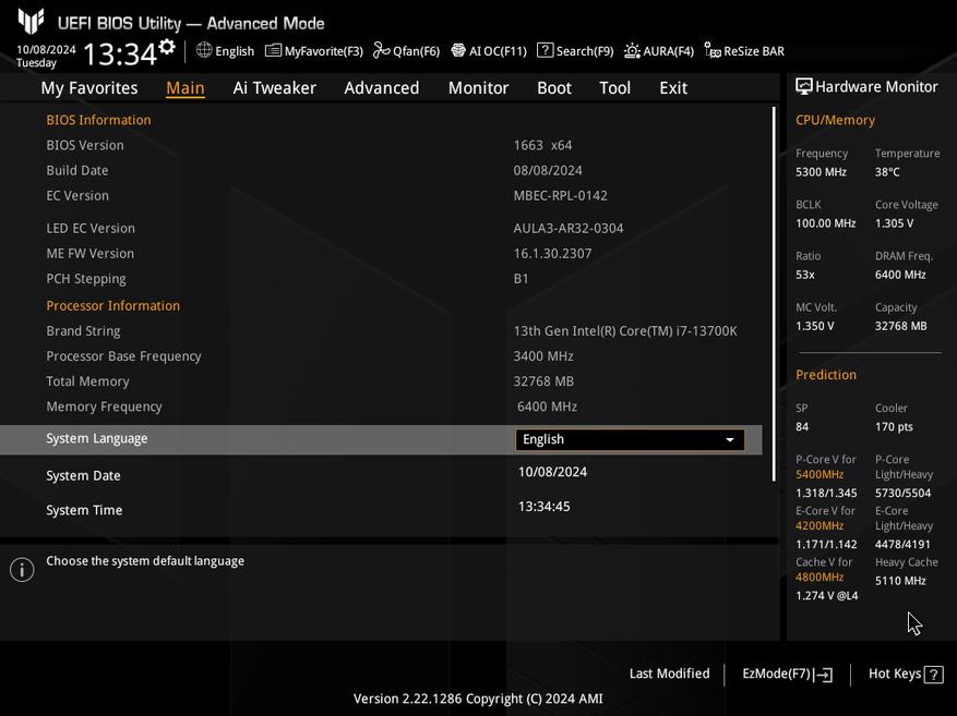 Система собрана на открытом стенде. Процессор Intel Core i7-13700K стоял под СЖО Thermalright Frozen Horizon 360 White ARGB, а оперативной памятью был комплект ADATA XPG Lancer Blade RGB 2x16 ГБ (AX5U6400C3216G-DTLABRBK). нагружалась утилитой Prime95 в режиме SmallFFT. Перед началом тестов BIOS был прошит последней (на момент подготовки материала) стабильной версией — 1663, а все настройки сброшены на базовые. Лимиты потребления PL1 и PL2 стандартны для процессора Core i7-13700K и равны 253 Вт.