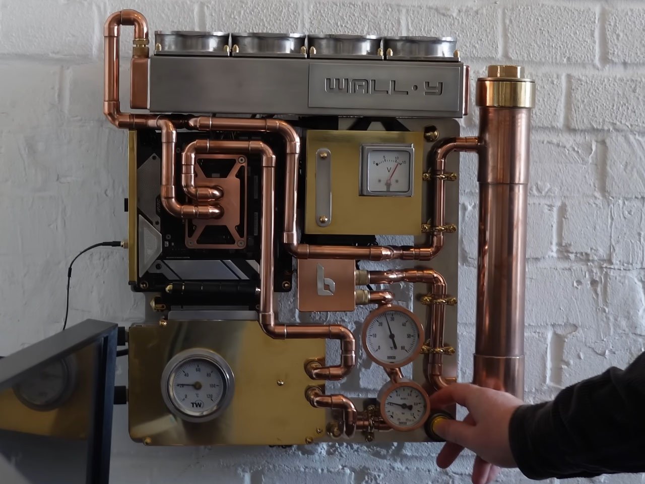 Billet Labs создал настенный ПК с водяным охлаждением из латуни и меди в стиле стимпанк