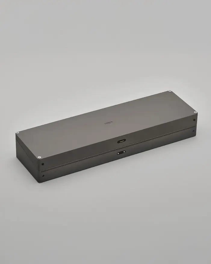 Корпус c100 изготовлен методом ЧПУ-фрезеровки из цельного блока алюминия с пескоструйной обработкой поверхности. Конструкция имеет клиновидную форму: клавиатура расположена под углом, вычислительные компоненты размещены в утолщённой задней части. Устройство оснащено центральным магнитным шарниром, позволяющим складывать клавиатуру без видимых внешних петель. Под съёмной крышкой находится встроенное отделение для хранения инструментов.