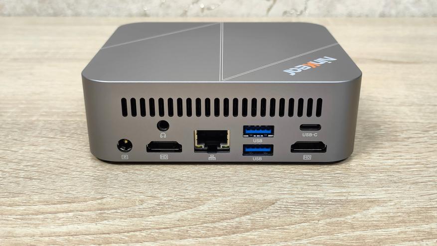 Это компактный компьютер, который соответствует форм-фактору плат 4х4 дюйма. Корпус металлический, но зачастую, он больше мешает, чем помогает, так как тепло на него практически никто не отводит, а вот изгаляться с антеннами беспроводного подключения производителю нужно будет. Еще, очень многие, по-прежнему, убеждены, что металлический корпус априори означает лучшее охлаждение — заблуждение. Внешне корпус очень похож на те, что были у Beelink SER6/SEI12, а ещё, у большого количества других мини-ПК. В этом нет ничего такого, так как производителей настоящих не так много, поэтому, приходится наблюдать следующую картину: с одной стороны множество похожих миников, с другой — иногда очень сильно отличающихся.