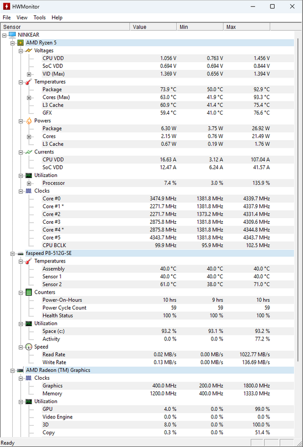 | Накопители | PCIe x4 M.2 SSD на 512 ГБ Faspeed P8 |