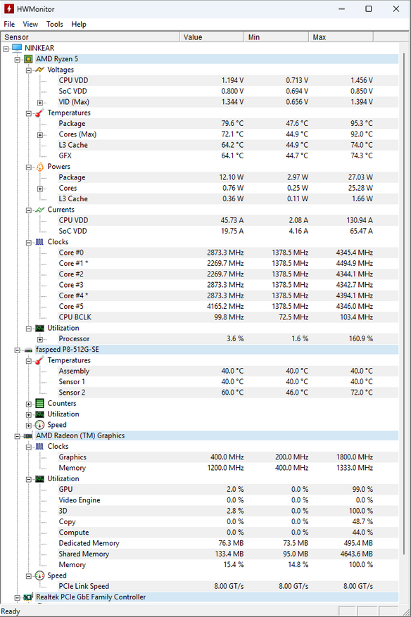 Отчасти это из-за того, что в базовой настройке кулер работает в щадящем режиме, то есть его слышно, но тем не менее, можно сказать, что мини-ПК остаётся очень даже негромким, а это означает, что при наличии рабочих настроек управления вентилятором, можно попробовать немного увеличить обороты, тем самым уменьшив нагрев процессора, а также стресс пользователя. Но, термопасту поменять я всё же попробую.