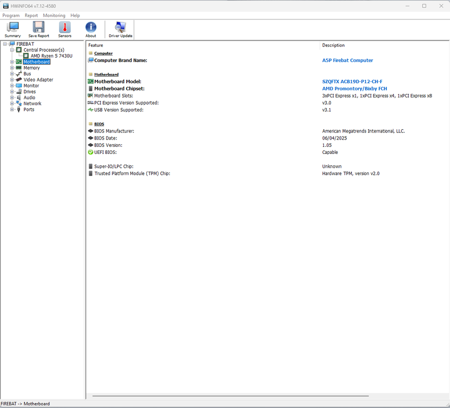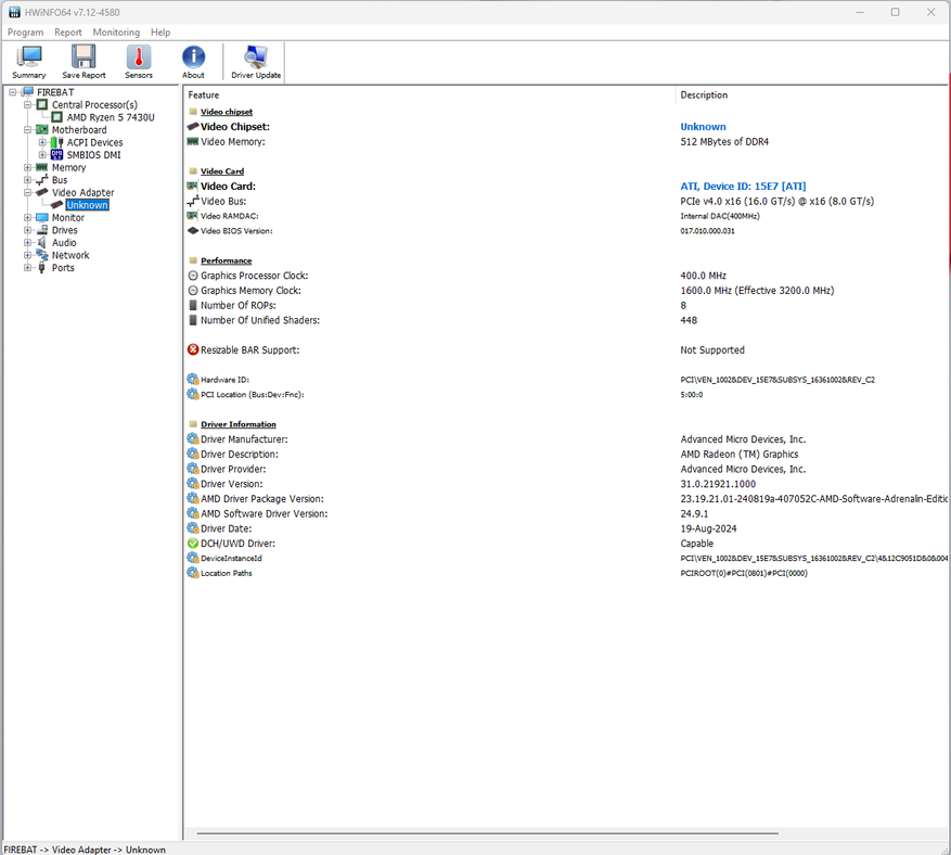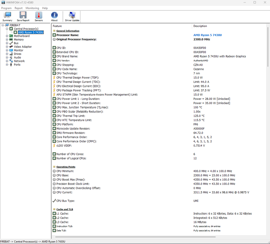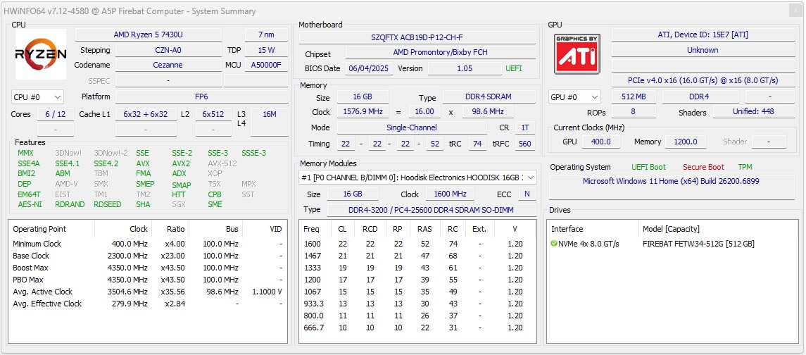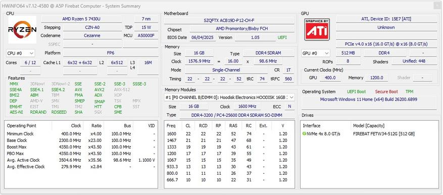 Если кому-то интересна более подробная информация об устройстве, то ниже можно посмотреть, что рассказывает нам HWiNFO об AM02 в деталях.
