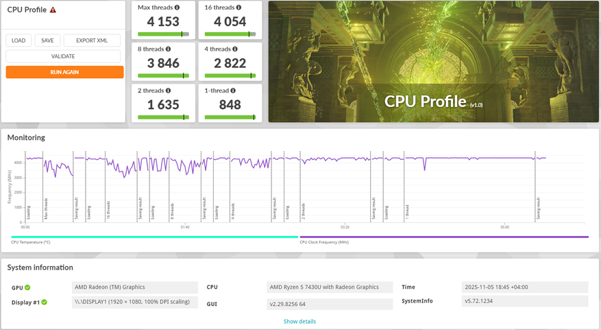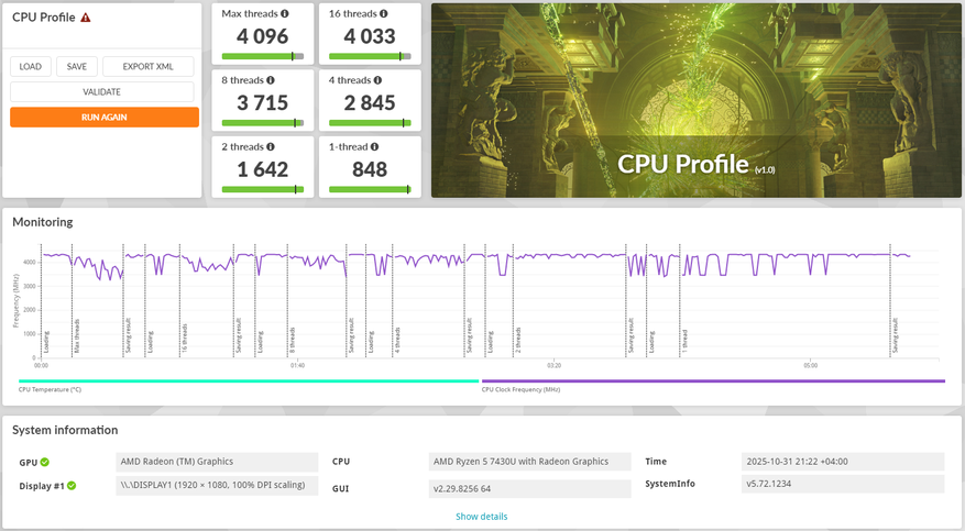 3DMARK для бенчмарка CPU показал результаты, чуть отличающиеся для 16 и 32 Гб оперативной памяти.