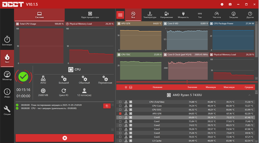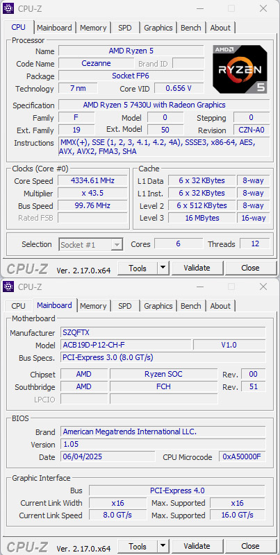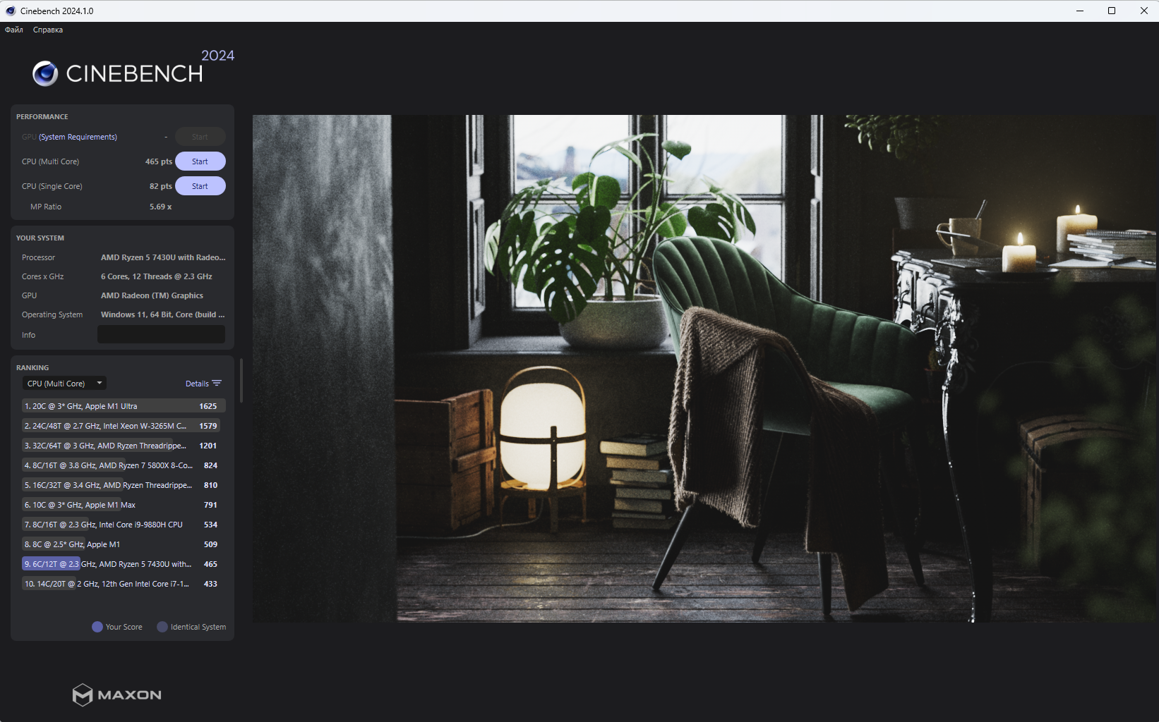 | Процессор | AMD Ryzen 5 7430U (6 ядер 12 потоков, до 4,3 ГГц, L3 Cache 16 MB) |