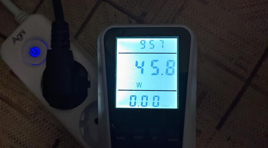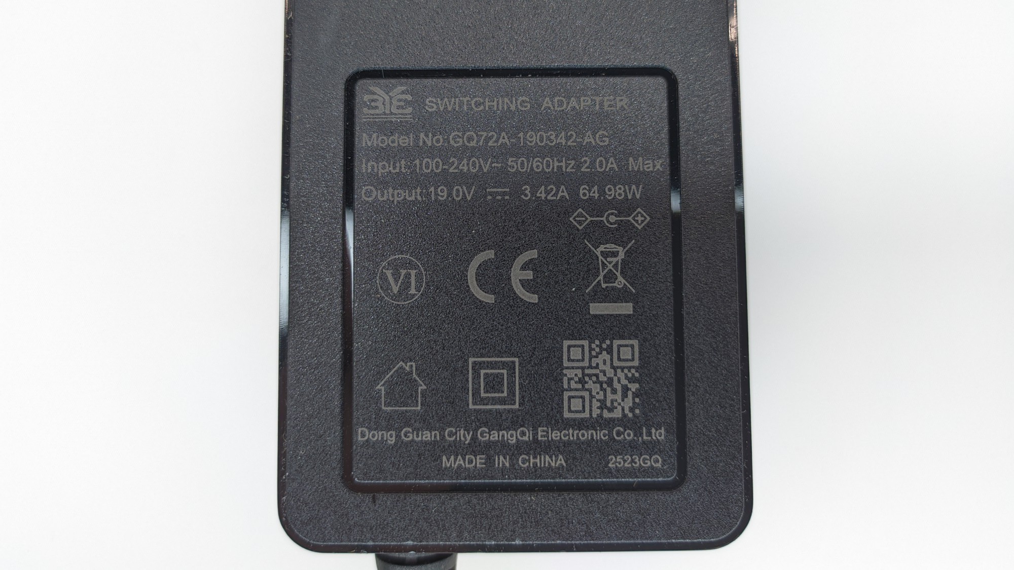 Система охлаждения процессора работает нормально, и даже в 15-минутном тесте OCCT температуры не приблизились к критичным. Заявлено TDP 15 ватт, но в карточке товара указано, что при бусте процессора до максимальной частоты 4,3 ГГц процессор начинает потреблять 28 ватт. Эта информация подтверждается HWiNFO на вкладке процессора (см. «Технические характеристики»). Там указано, что на длинных дистанция потребление может быть 28 ватт, и кратковременно может доходить и до 35 ватт. В стресс-тесте OCCT также в потреблении значится цифра в 28 ватт. Из розетки во время теста аппарат потреблял 45 ватт. В простое потребляет 7-10 ватт. Штатный блок питания здесь на 65 ватт (19V-3,42A) с самым обычным разъемом 5,5х2,5 мм и проводом длиной 150 см. Если что, то заменить его можно будет без проблем, но этот блок внушает доверие, и он тяжеленький. Запитать миник через Type-C разъем нельзя. Пробовал двумя зарядками на 45 и 67 ватт, и последний с поддержкой 20 вольт.