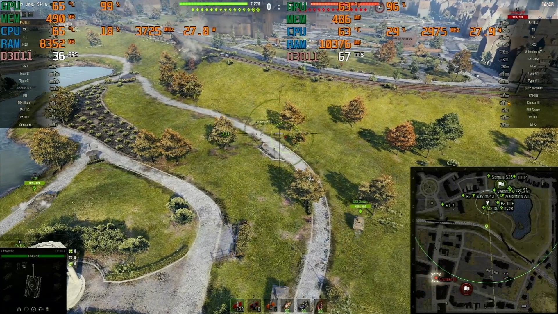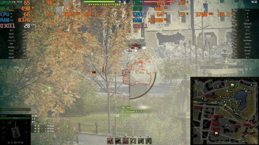 В WoT можно играть даже с 16 Гб, тем более если понизить графику до низких настроек. AM02 так хорошо справляется с этой игрой, что я специально выставил средние настройки, чтобы игра с 16х2 Гб не упиралась в потолок моего монитора 75 Гц и была видна динамика FPS.