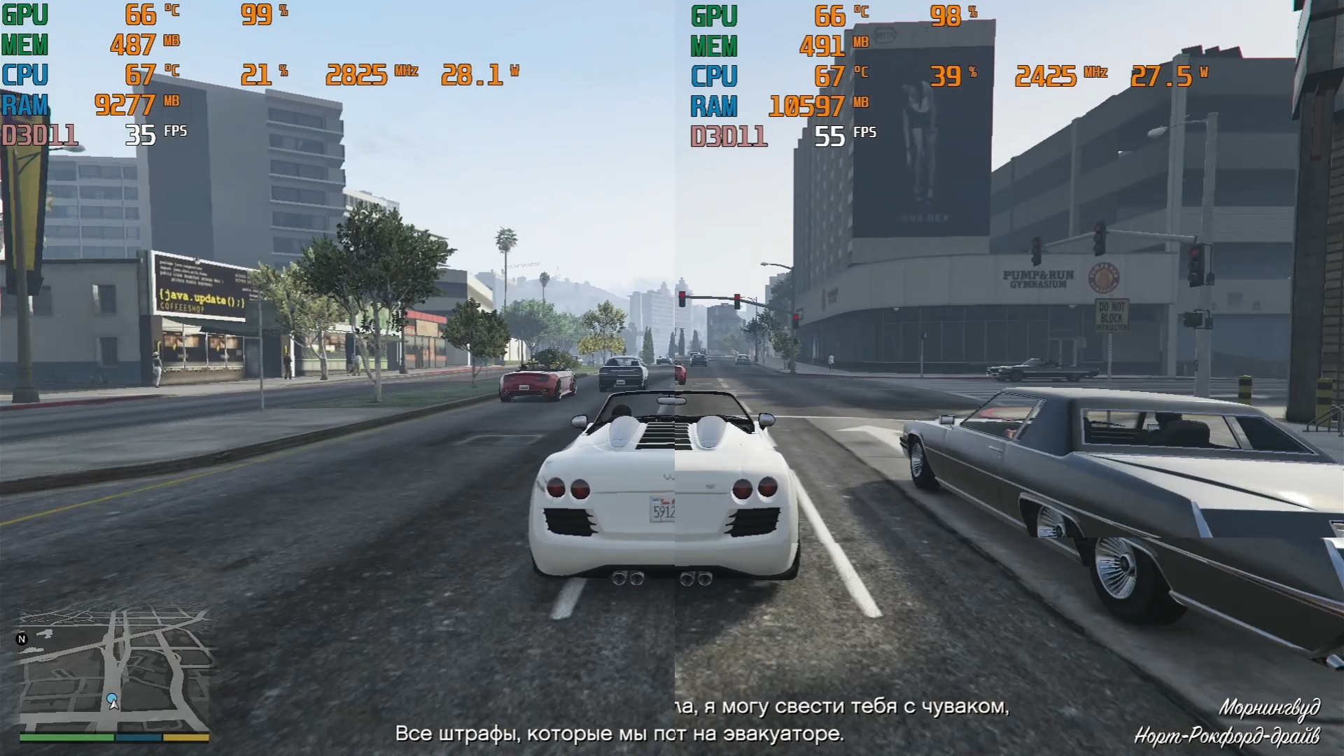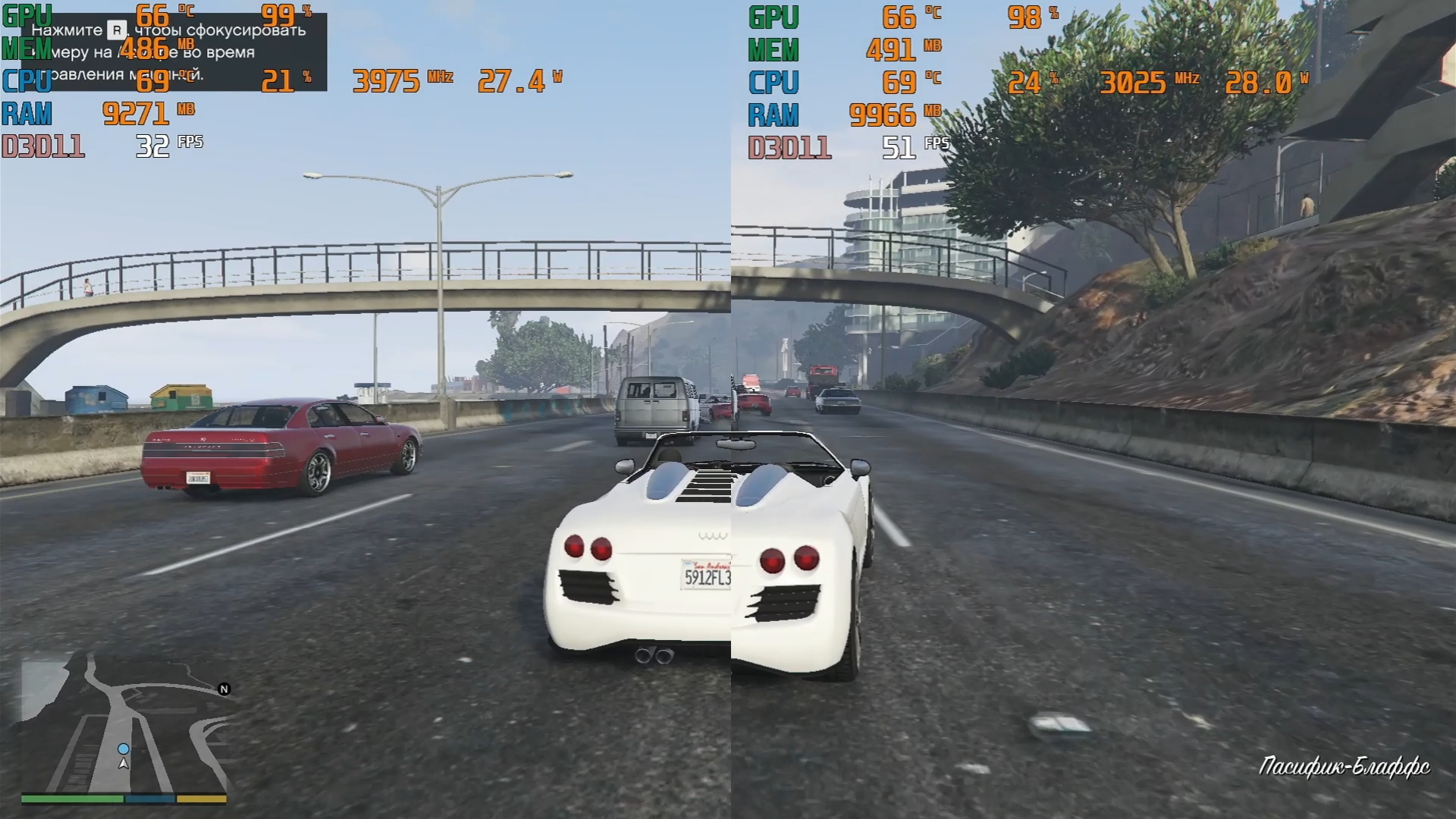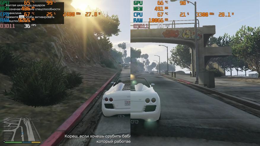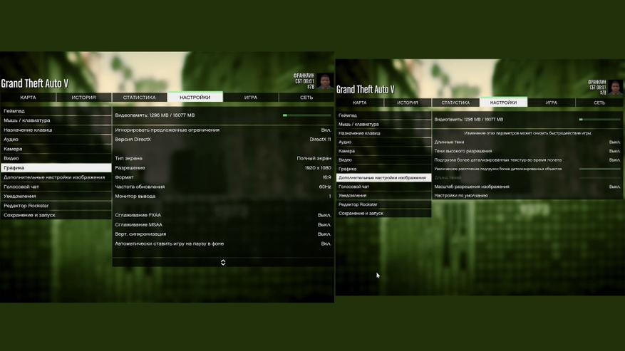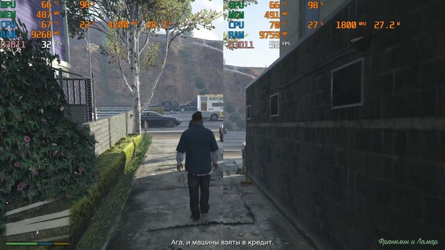 GTA 5 также вполне играбельная даже с 16 ГБ оперативной памяти. Само собой, настройки придется опустить до минимума, но картинка все равно остается неплохой, и можно даже еще чуть понизить разрешение. С 16х2 Гб геймплей очень даже комфортный.