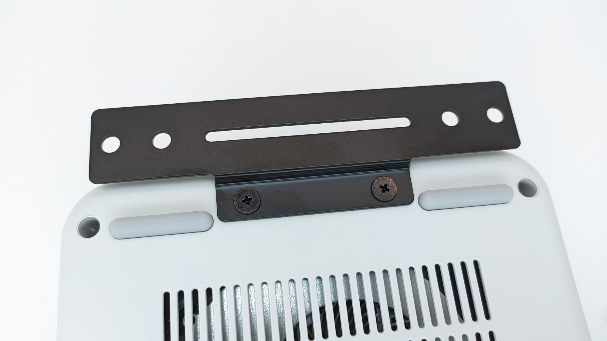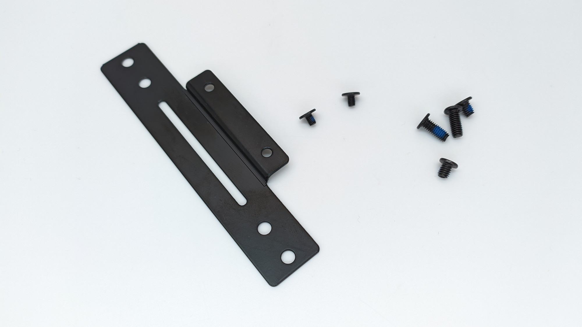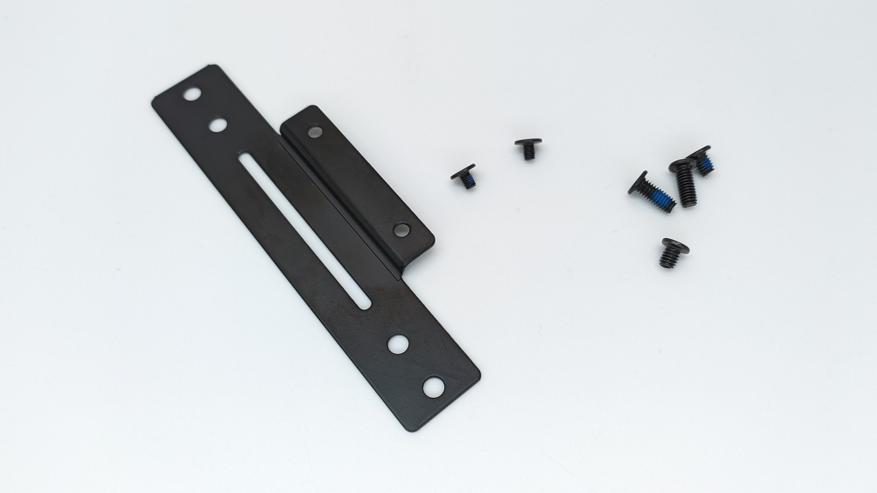 Я не знаю, есть ли мониторы со специальным креплением для мини-ПК, и не могу прикинуть, как можно было бы прикрепить к моему монитору со штатной ногой, но к стороннему кронштейну, которым я пользуюсь, в нижнюю часть у меня прицепить можно. Правда, тогда AM02 торчал бы из-под монитора, что не очень-то эстетично выглядело бы. А для прилагающихся болтиков понадобились бы еще и гайки. Отверстия на комплектной планке крепежа сделаны с расстоянием 75 и 100 мм, и это стандартные VESA размеры крепежа на самих мониторах. В общем, как крепить, не очень понятно на обычные мониторы, если у них есть только крепление для ноги.