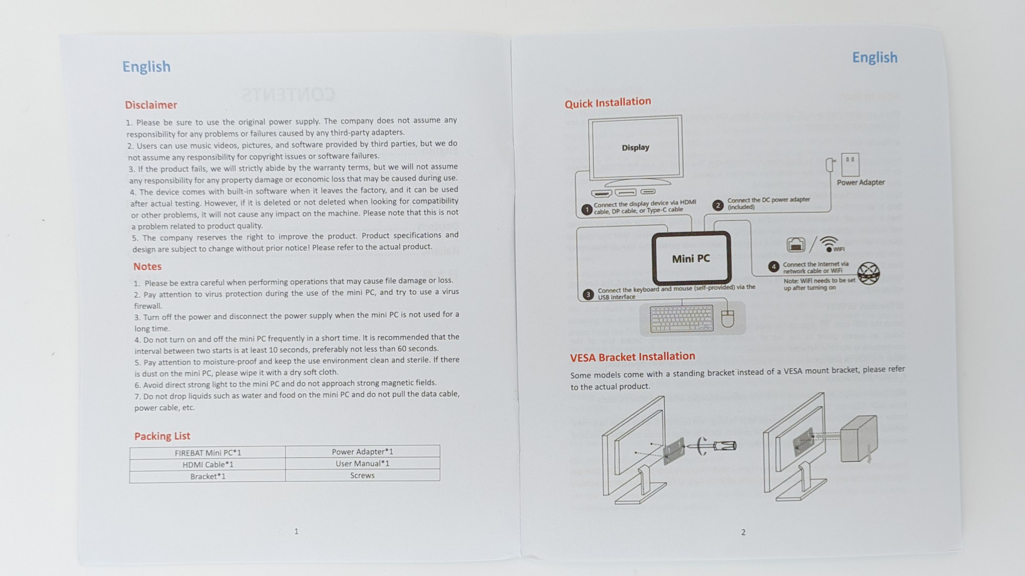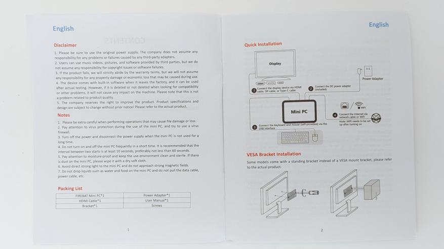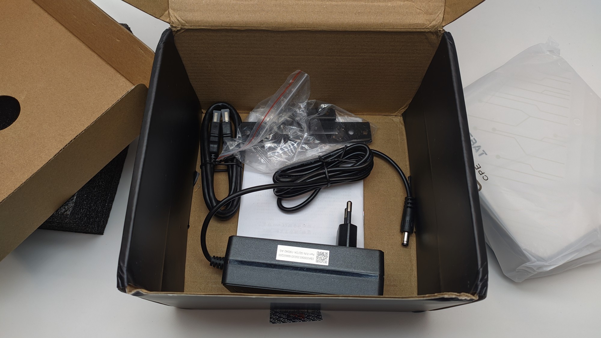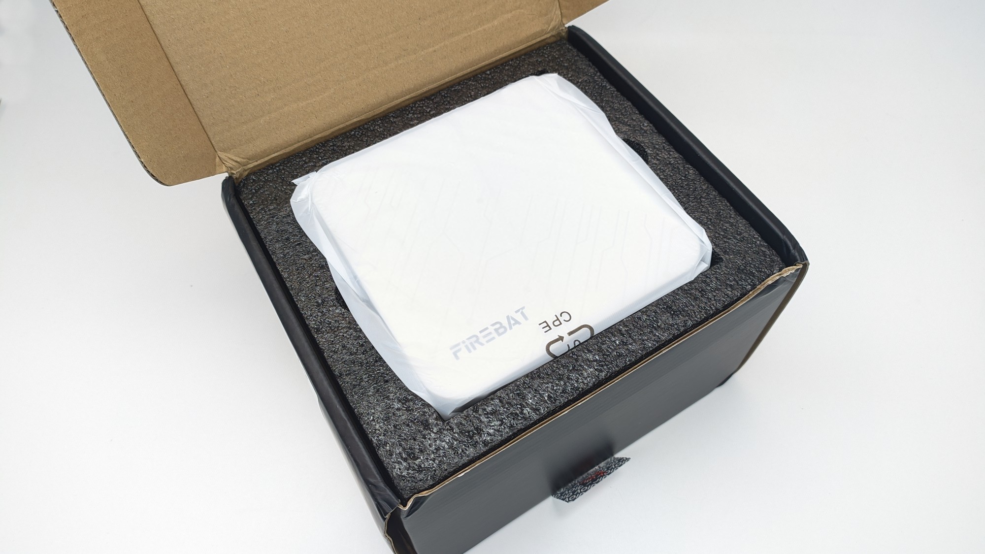 Доставка по времени заняла две недели. Пришел AM02 в шаткой коробке, обмотанной пупыркой и скотчем. Фото не сделал. Коробка из-тонкого картона, но совершенно не пострадала, даже углы были, можно считать, не замятые. Предусмотрели наклейку-пломбу, которая показала бы, что коробка ранее вскрывалась. Внутри сам мини-ПК лежал в ванночке из вспененного полиэтилена так, что между компьютером и верхней тонкой крышкой не было больше ничего. Бортики ванночки были всего на пару мм выше самого миника. Не очень надежно. Хотя верхняя крышка у самого AM02 толстая да еще и с небольшими ребрами жестокости. Но все равно хорошо, что сейчас можно вскрыть коробку перед получением. Под этой ванночкой и картонной проставой уже лежала вся остальная комплектация.