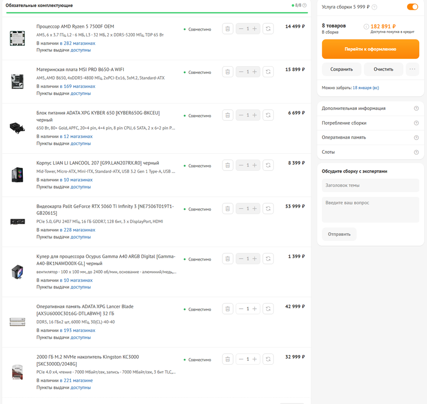 Ozon не порадовал поисковыми фильтрами. Они подобраны крайне плохо и не позволяют нормально выставить желаемую конфигурацию. При этом сам ассортимент весьма разнообразен, но подробных конфигураций сборок не указано.