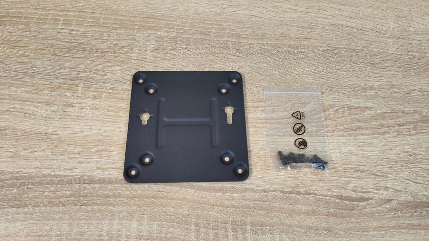 Адаптер питания производства BSY, такой я уже видел, и как в прошлый раз отмечу, что шрифт очень похож на тот, что когда-то использовала IBM, а может быть используют и до сих пор (наверняка, это же легенда). Нигде не заявлено, что это блок питания основан на GaN транзисторах, но это очень компактный блочок. На видео я его даже сравнил со 140-ваттной зарядкой, как раз-таки на GaN. Все остальные аксессуары также не представляют какой-то новизны, HDMI кабель примерно метровый, VESA кронштейн и набор для его крепления.