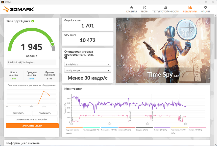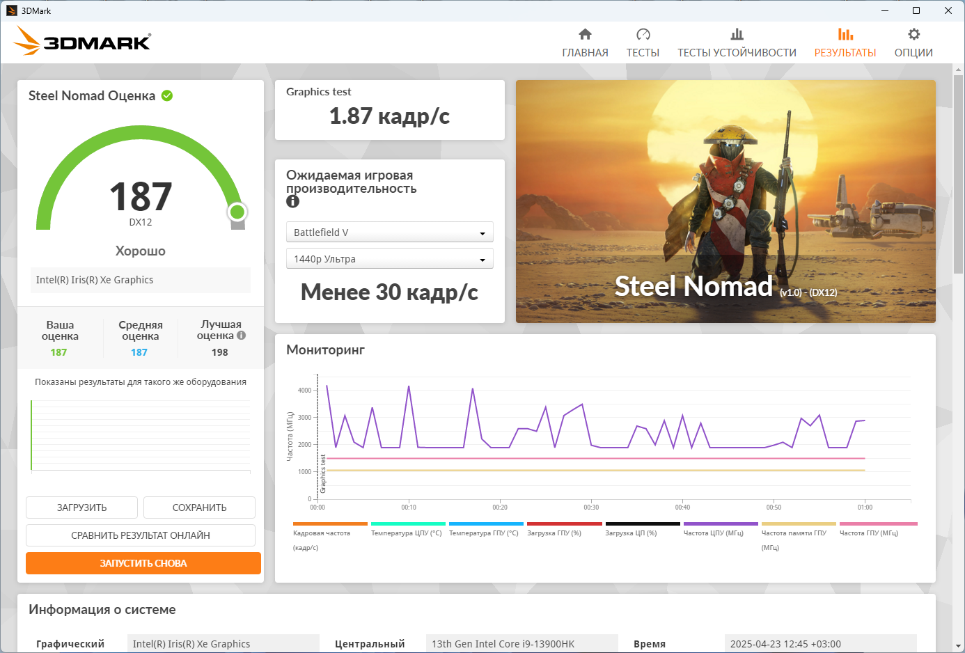 Игровые тесты встройки Iris XE в старших процессорах Intel 13 поколения для меня уже не столь интересны, так как они показывают практически одинаковые результаты, а если отстраниться от сравнения между процессорами, то результаты эти находятся приблизительно на уровне между Radeon 660M и 680M, то есть их можно назвать условно игровыми.