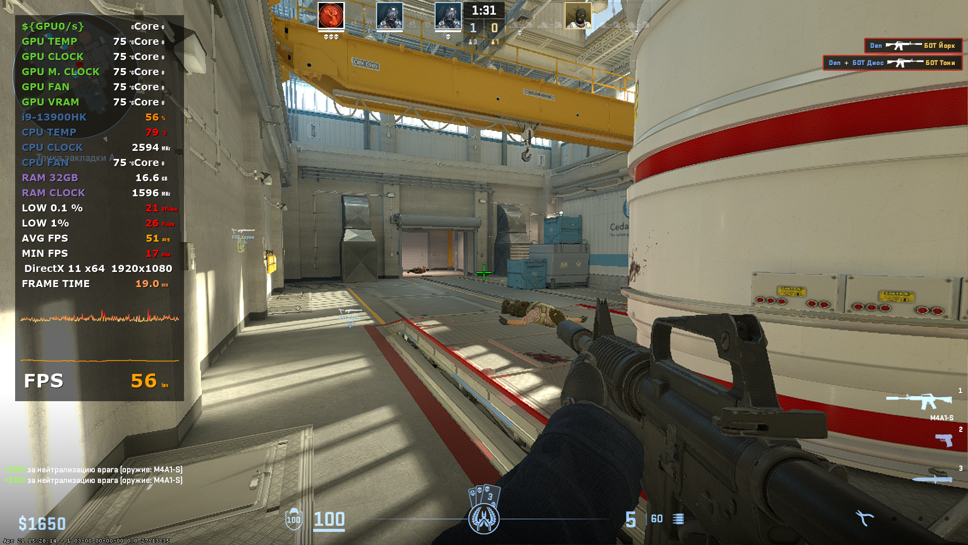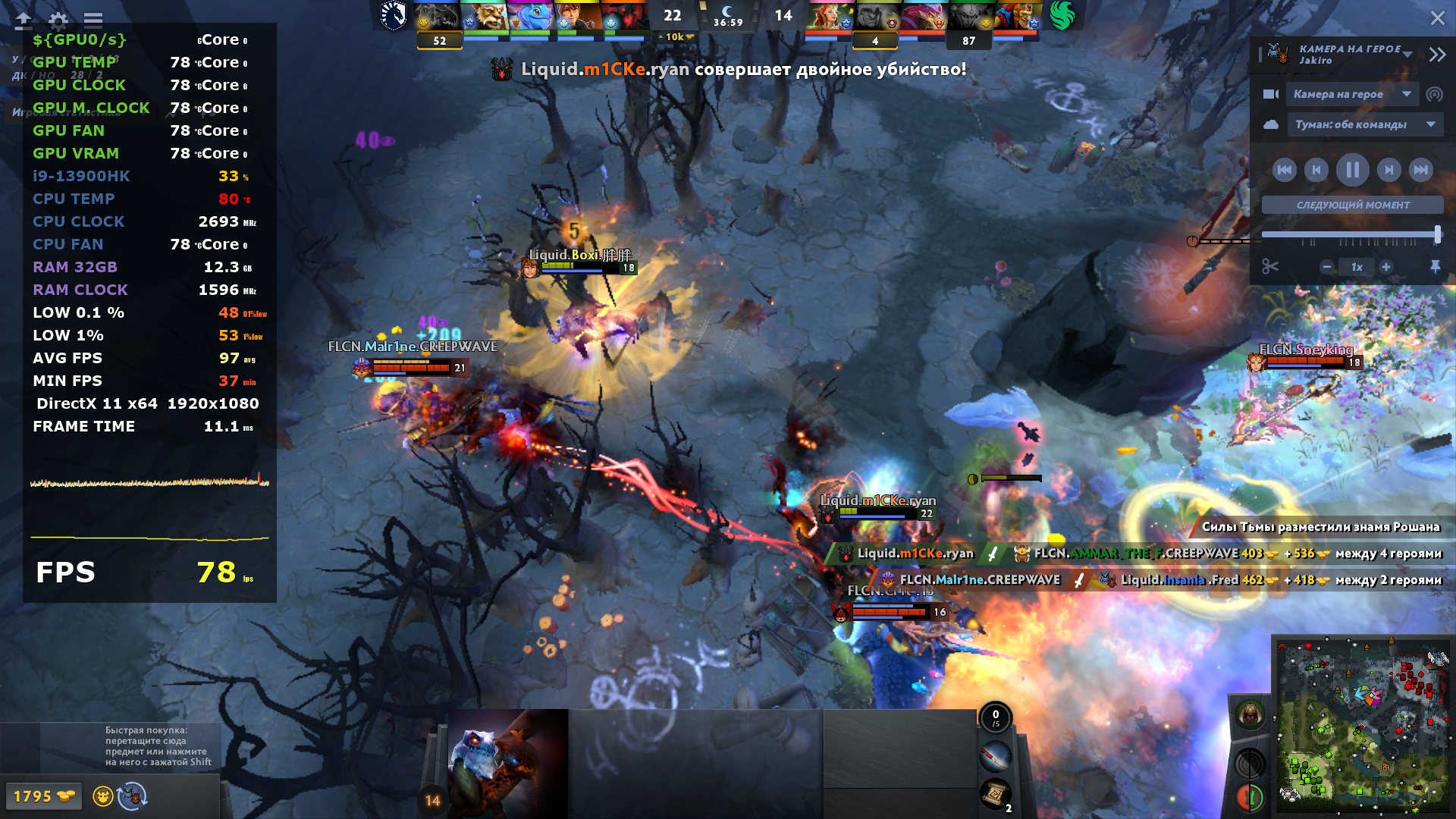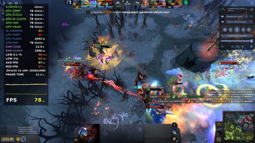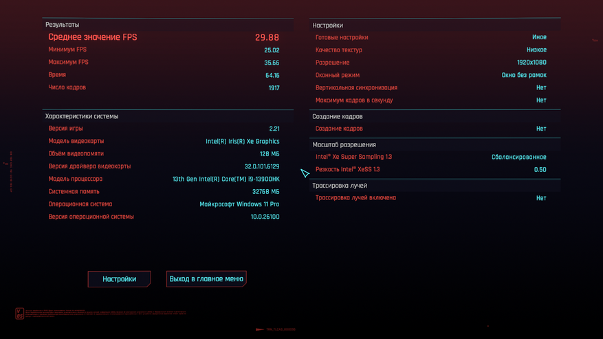 В том же киберпанке встройка показывает около 30 кадров в секунду в FHD на минимальных настройках графики и с XeSS на производительность. К слову сказать, сталкер отказался запускаться, так как не поддерживается это видео ядро, а Kingdom Come 2, запустился и показывает результаты местами чуть выше чем у киберпанка, можно только порадоваться за оптимизацию. Ну, а в DOTA 2 и CS 2 проблем нет, на минималках иногда можно и поиграть.