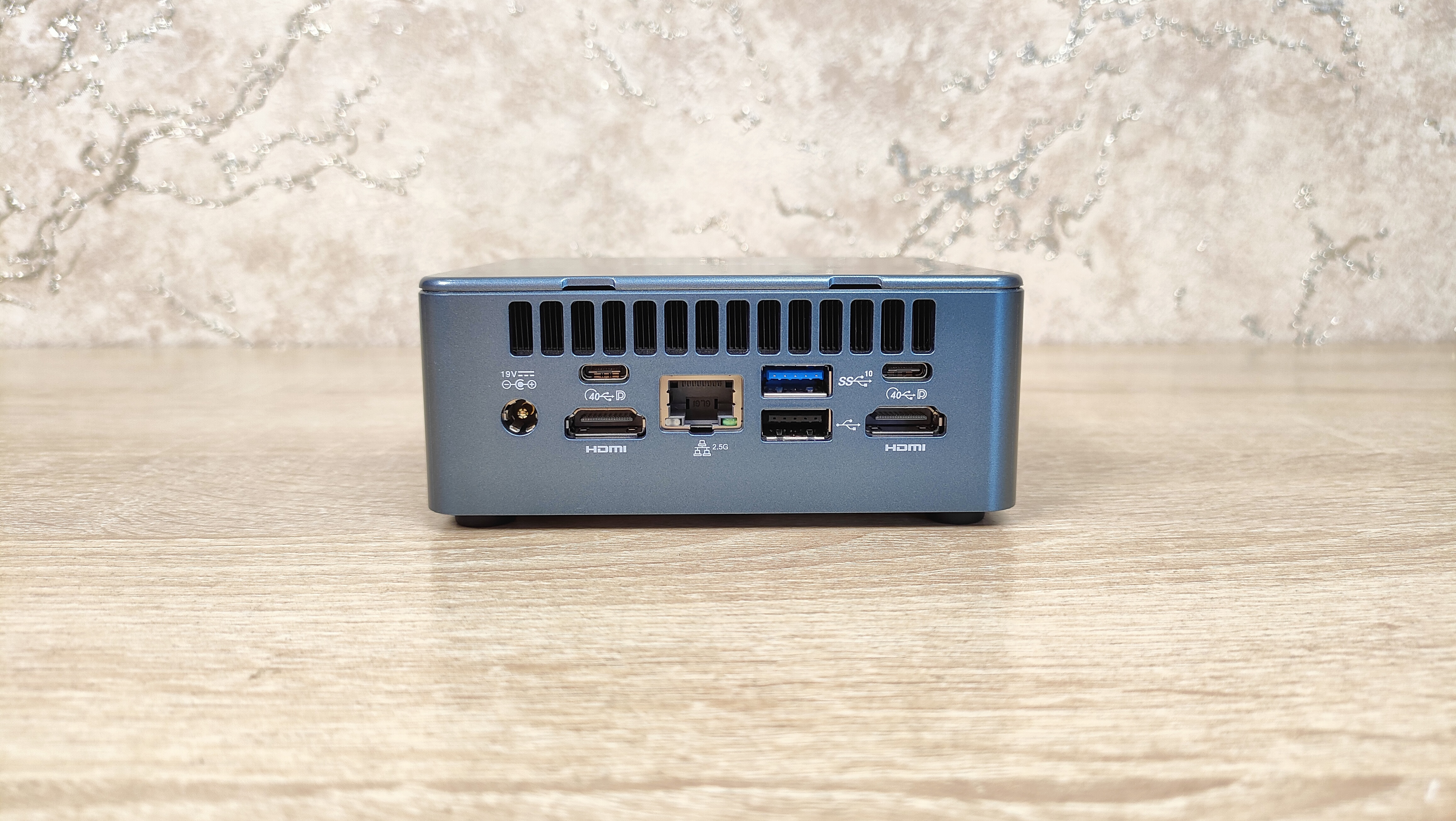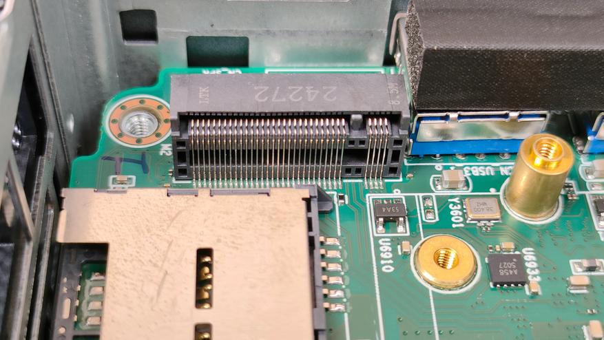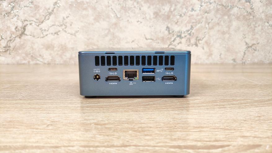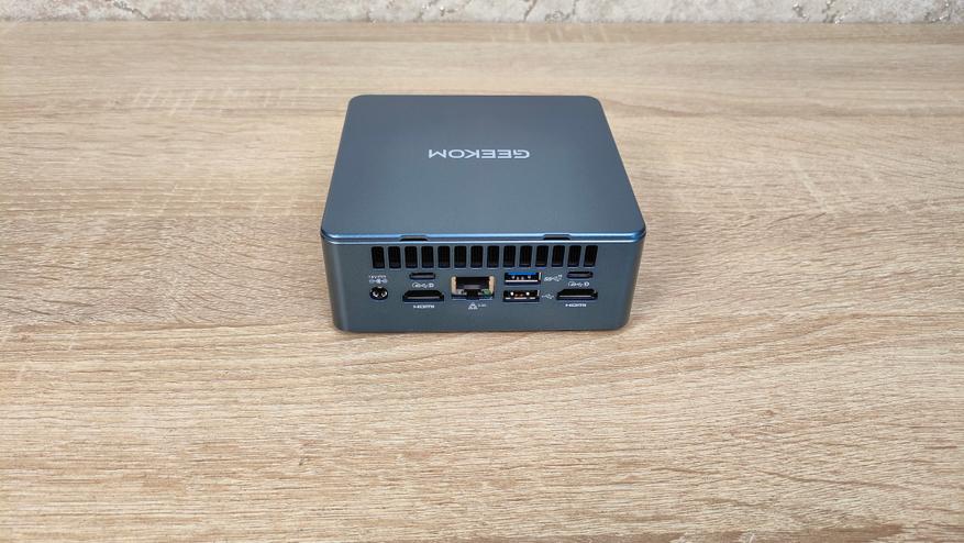 По разъёмам у гиком очень всё стабильно и привычно, так как данный набор интерфейсов кочует из одного миника в другой, из серии в серию, ещё и между разными сериями они похожие. Спереди: два USB кнопка питания и миниджек 3.5 мм; слева: забытый многими картовод для SD карт; сзади: 2 USB4 Type-C, USB 3.2 Gen2, USB 2.0, 2*HDMI, 2,5 GbLAN, порт питания.