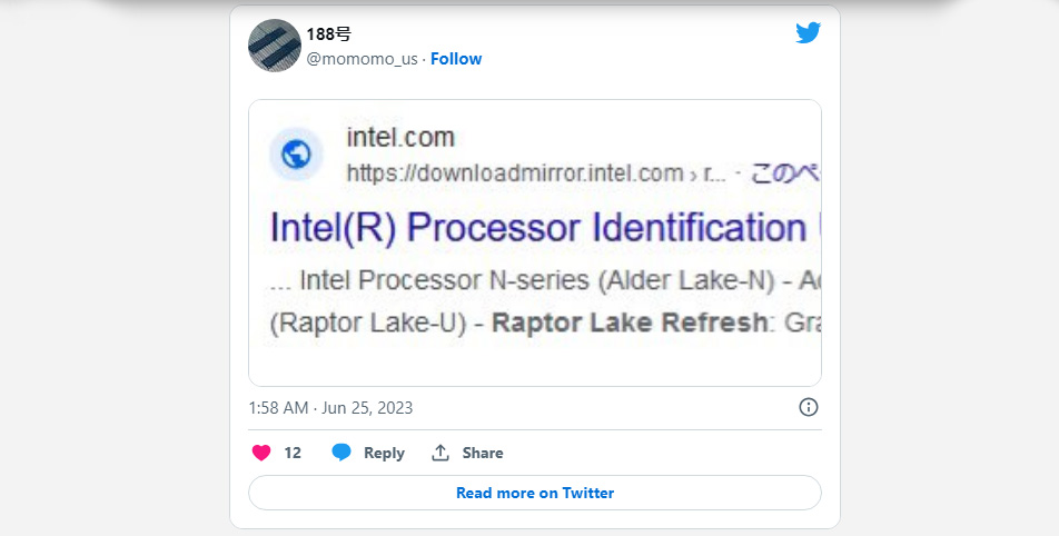 Специалист по аппаратному обеспечению @momomo_us обнаружил, что Intel на официальном сайте упоминает новую серию Raptor Lake.