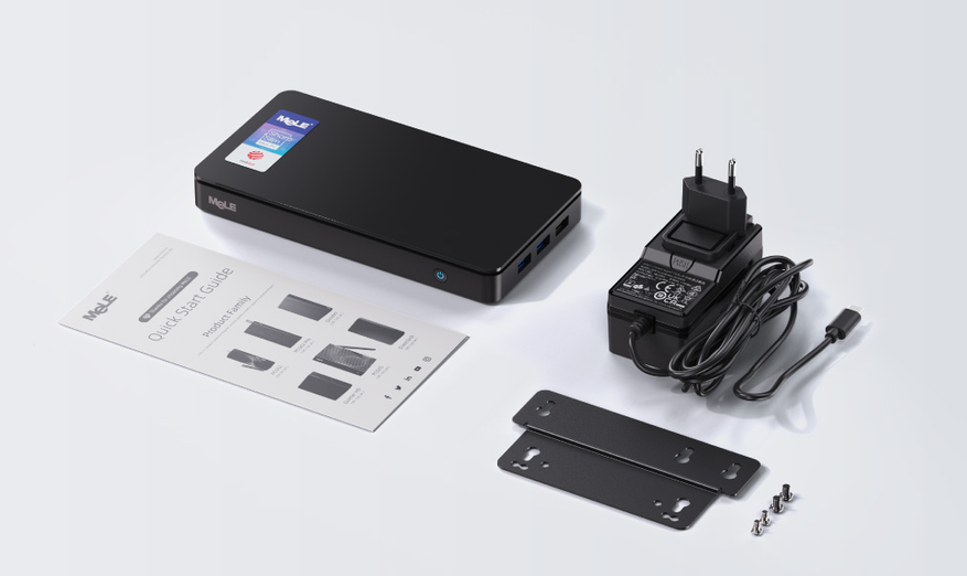 В комплект поставки входят крепление VESA (75/100 мм) для монтажа на мониторы и сравнительно компактный внешний блок питания на 12В/3А со штекером USB-C. MeLE Overclock X2 поддерживает Windows 11 Pro/Home, Windows 10, а также различные дистрибутивы Linux, такие как Ubuntu и Debian.