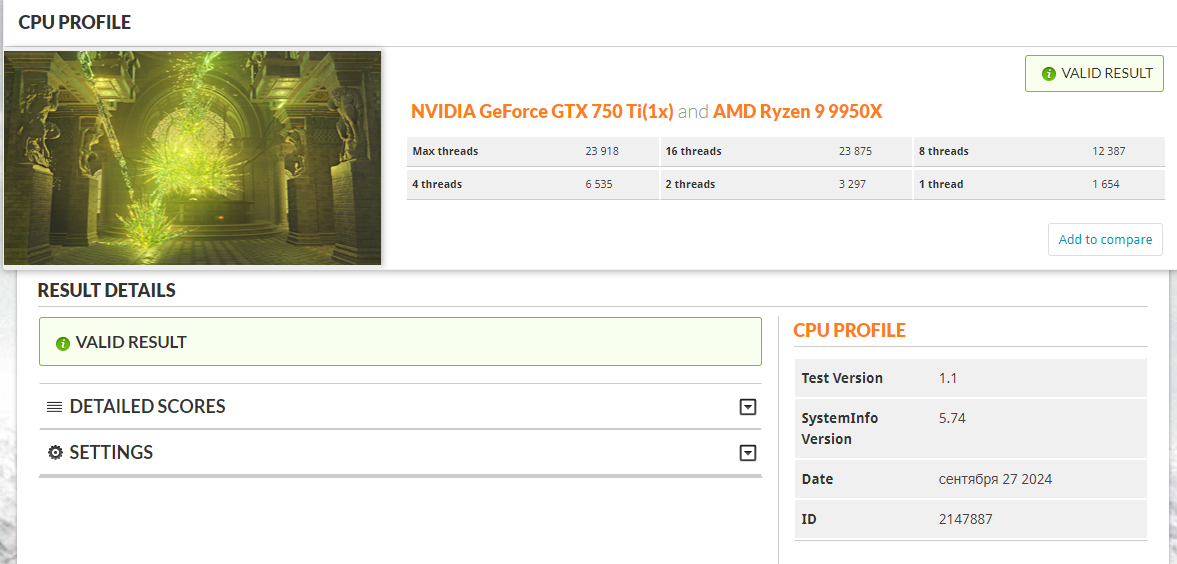 Результаты теста 3D Mark, который проводила команда Asus представлены на скриншотах ниже. В 3D Mark тесте процессору удалось набрать 23918 баллов при задействовании всех ядер и потоков и 1654 в одноядерном тесте.