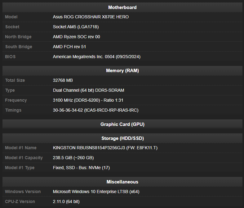 Частота которую смогли достичь оверклокеры, является рекордной для процессоров AMD Ryzen. Вы можете увидеть дамп настроек и ознакомиться с характеристиками тестового стенда на скриншотах ниже:
