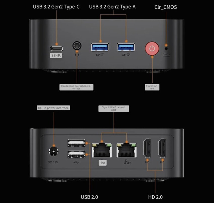 Wi-8 также комплектуется 16 ГБ оперативной памяти DDR4-3200 и твердотельным накопителем емкостью 512 ГБ, установленным в слоте M.2 2280. Набор портов включает в себя два HDMI 2.0, два USB 3.2 Gen2 Type-A, один USB 3.2 Gen2 Type-C, два USB 2.0, аудиоразъем и два порта Gigabit Ethernet.