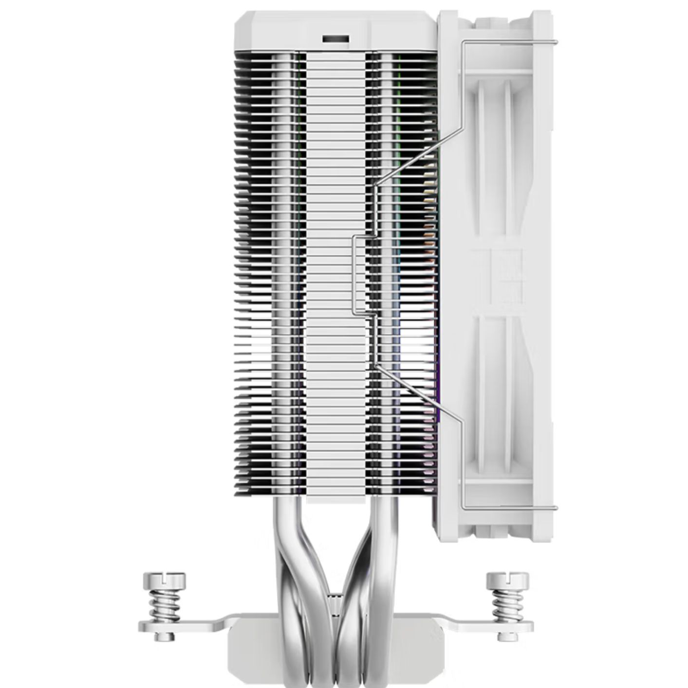Судя по описанию, кулер имеет прямой контакт с процессором и оснащен четырьмя теплотрубками диаметром 6 мм AGHP 4.0, которые обеспечивают максимальную мощность рассеивания тепла в 225W. Встроенный в него вентилятор Leeman TL-P12W-S ARGB FDB поддерживает PWM-контроль температуры и может достигать максимальной скорости 2000 RPM при уровне шума всего 29.8 dB. Максимальный поток воздуха составляет 70.84 CFM, а статическое давление — 2.63 mm/H2O.