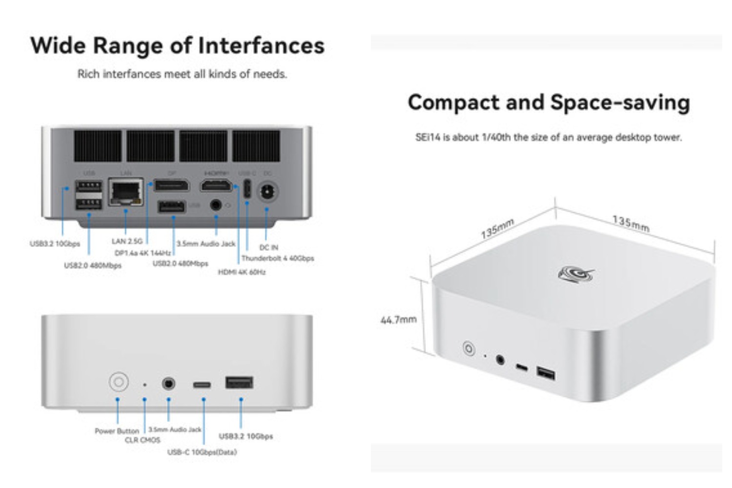 Представленный в КНР ранее в этом месяце, Beelink SEi14 дебютирует на мировом рынке. Это устройство оснащено чипом Intel Core Ultra 5 125H, который является моделью среднего класса в линейке Intel Meteor Lake. На официальном сайте компании доступна только одна конфигурация, что поступит в продажу на мировой рынок, с 32 ГБ ОЗУ и 1 ТБ встроенной памяти.