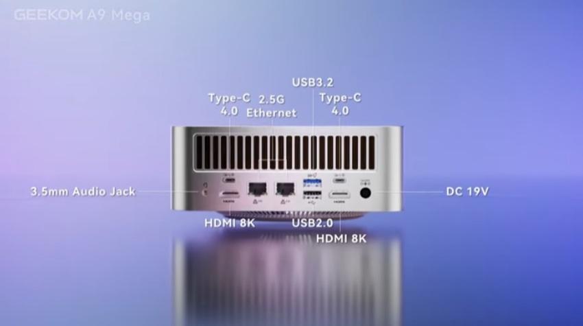 Пока A9 Mega предлагается только в одной конфигурации, хотя ранее Geekom намекала на возможность различных вариантов объема памяти в сочетании с гибридным процессором AMD Ryzen AI Max+ 395. На данный момент A9 Mega поставляется исключительно со 128 ГБ оперативной памяти. Корпус A9 Mega размером 171 x 171 x 70,9 мм оснащен следующими портами: