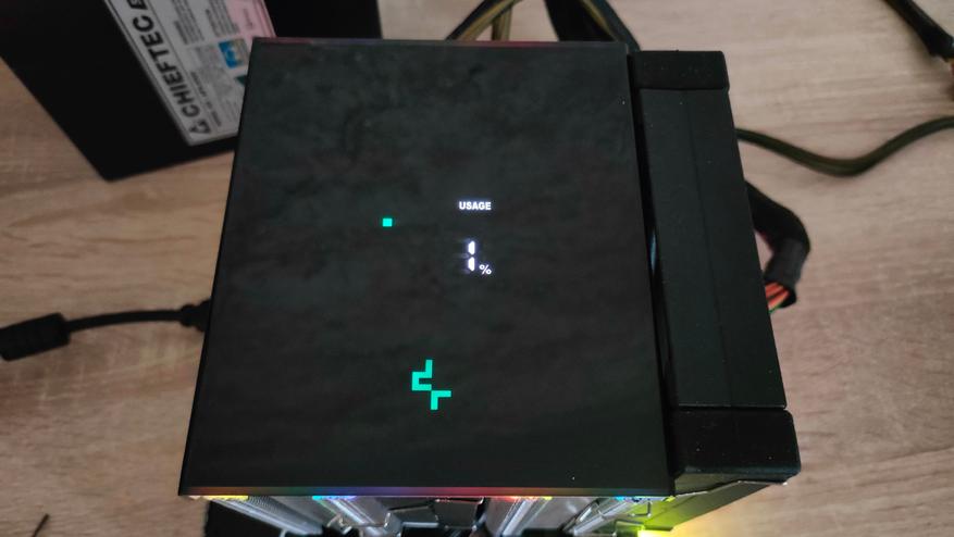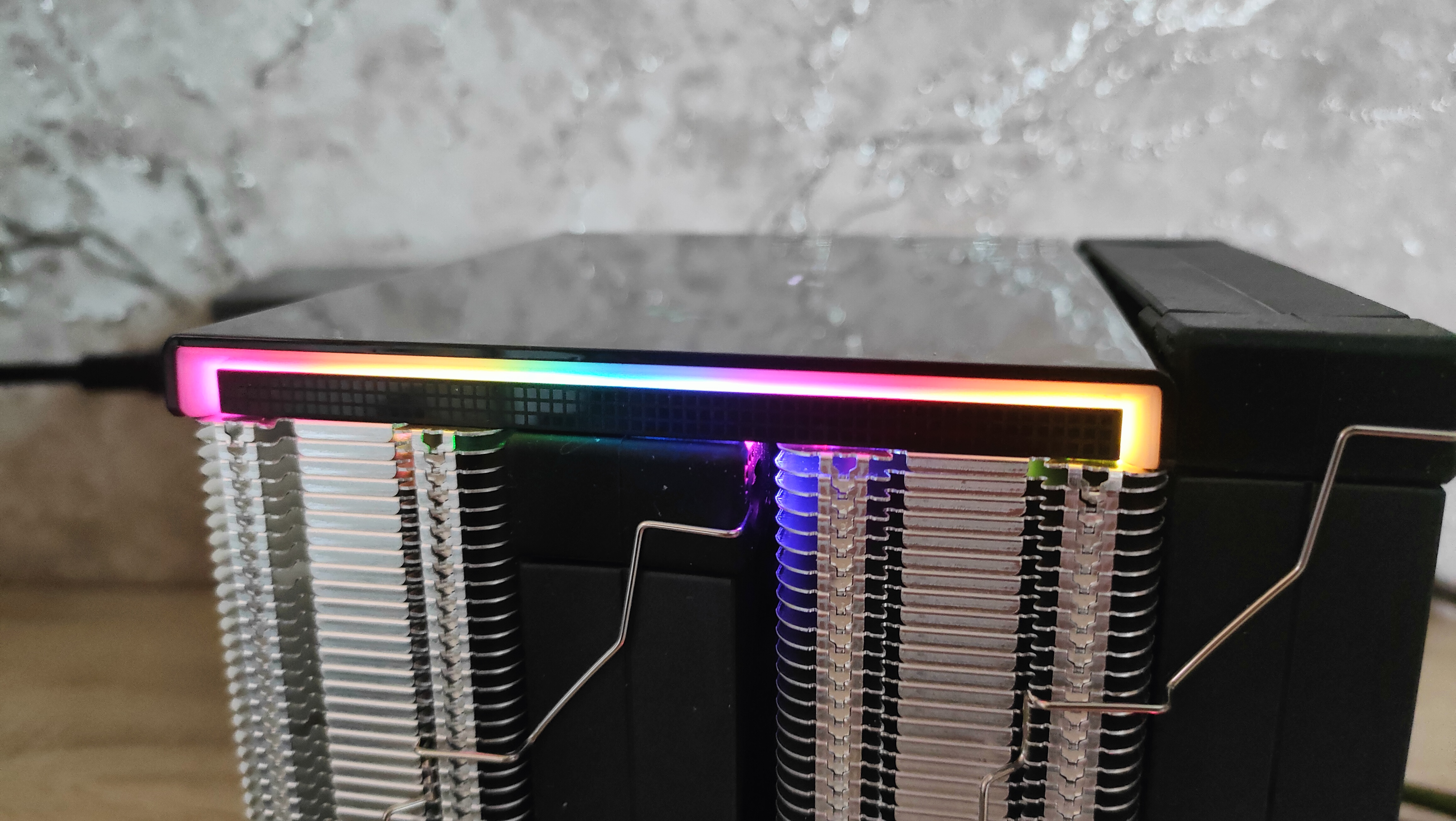 Подсветки в этом кулере немного, только лишь вот такая полоска на крышке с экраном.