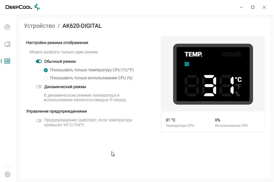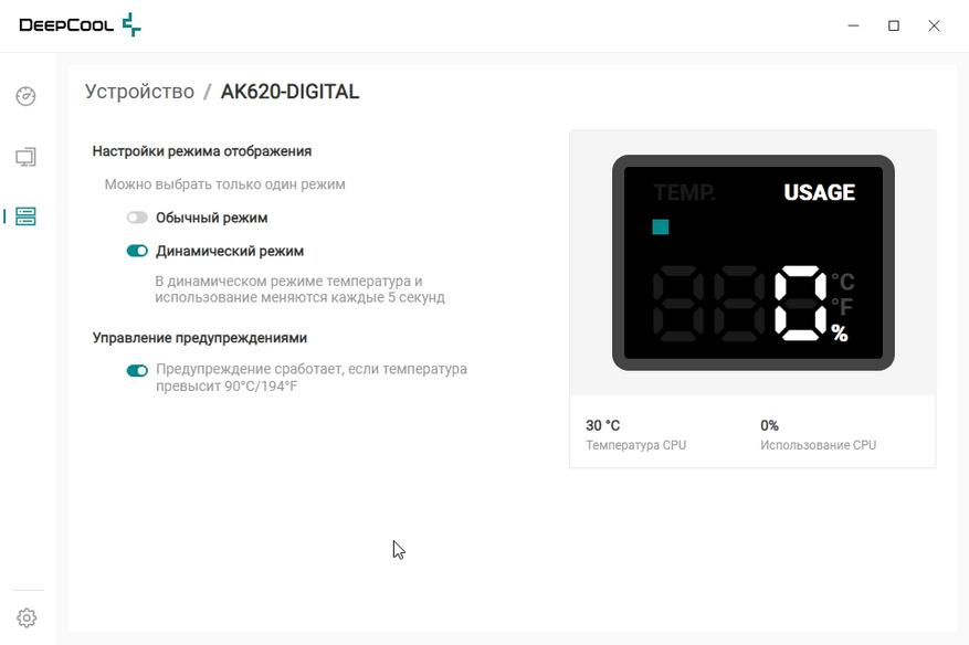 Так как в системе охлаждения есть встроенный экран, то его работу можно контролировать в специализированном ПО, которое скачивается с официального сайта.