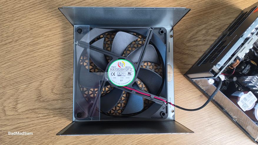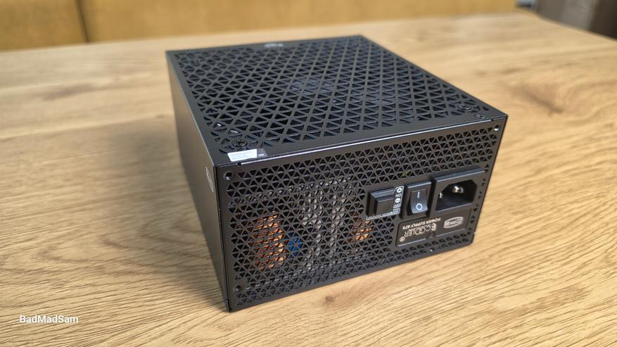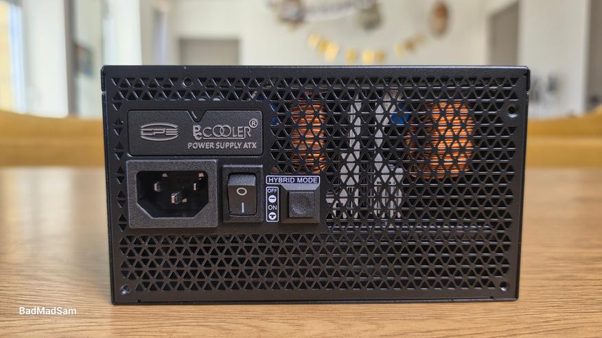 Теперь про гибридный режим, потому что это один из важнейших моментов. На корпусе есть отдельный переключатель, который включает или отключает полупассивную работу вентилятора. В этом режиме при небольшой нагрузке вентилятор не вращается вообще. Блок работает в пассиве, пока не достигнут определенный уровень мощности или температуры. В реальной системе это будет заметно, например, при обычной работе, просмотре видео или легкой нагрузке, когда блок остается полностью бесшумным. Как только нагрузка растет, вентилятор включается и начинает работать уже в активном режиме. При этом переход не резкий, без скачков оборотов. Но важно понимать, что при длительной работе в пассиве температура внутри выше, чем при постоянном обдуве. Это нормальная особенность такого режима, а не проблема.