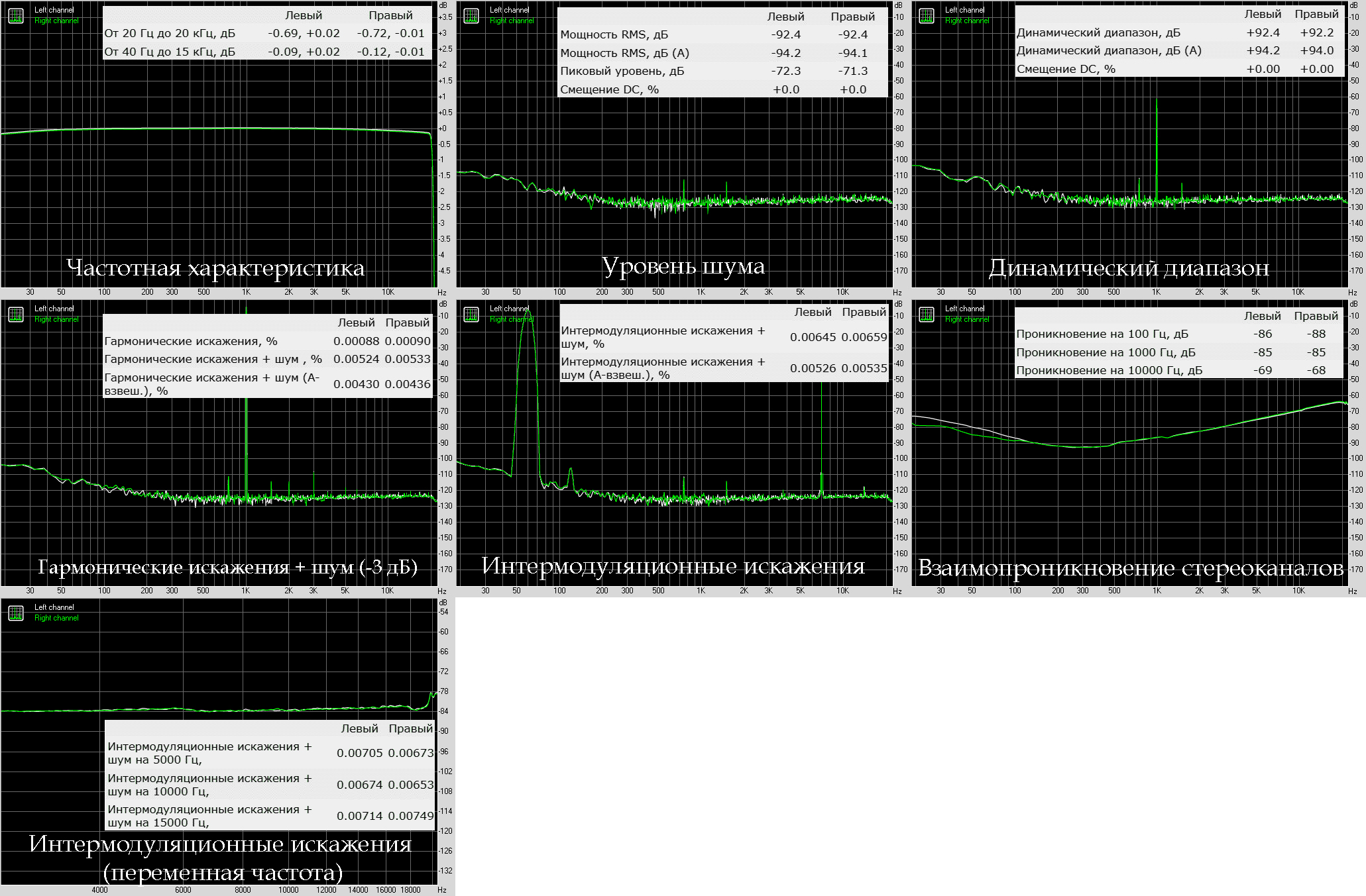 Для оценки качества звучания использовалась знаменитая программа RMAA 6.4.5. Измерения проводились в традиционном режиме External Loopback (линейный выход → линейный вход) с активным Direct Mode для чистоты эксперимента.