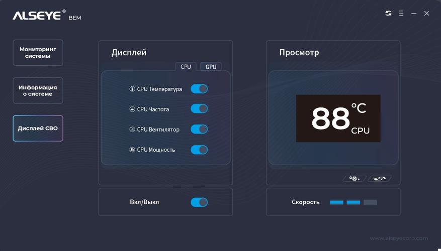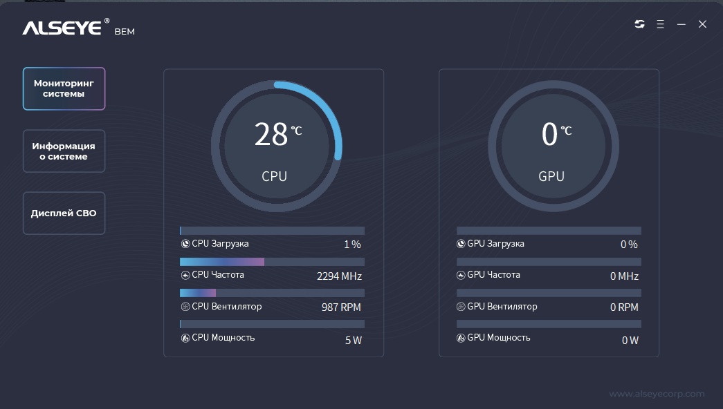 Для того чтобы светодиодная индикация параметров процессора и видеокарты начала работать, необходимо подключить USB коннектор в материнскую плату и установить официальное программное обеспечение. Всего пользователю доступно 3 вкладки. Первая вкладка содержит мониторинг параметров процессора и видеокарты, такие как: мощность, частота, загрузка, обороты вентилятора. Вторая вкладка отображает информацию о компьютере с указанием всех установленных компонентов. Третья вкладка используется для настройки дисплея и пользователь может выбрать только те параметры, которые требуются для мониторинга. Также пользователь может выбрать скорость обновления данных, всего доступно 3 режима низкая скорость, средняя скорость, высокая скорость.