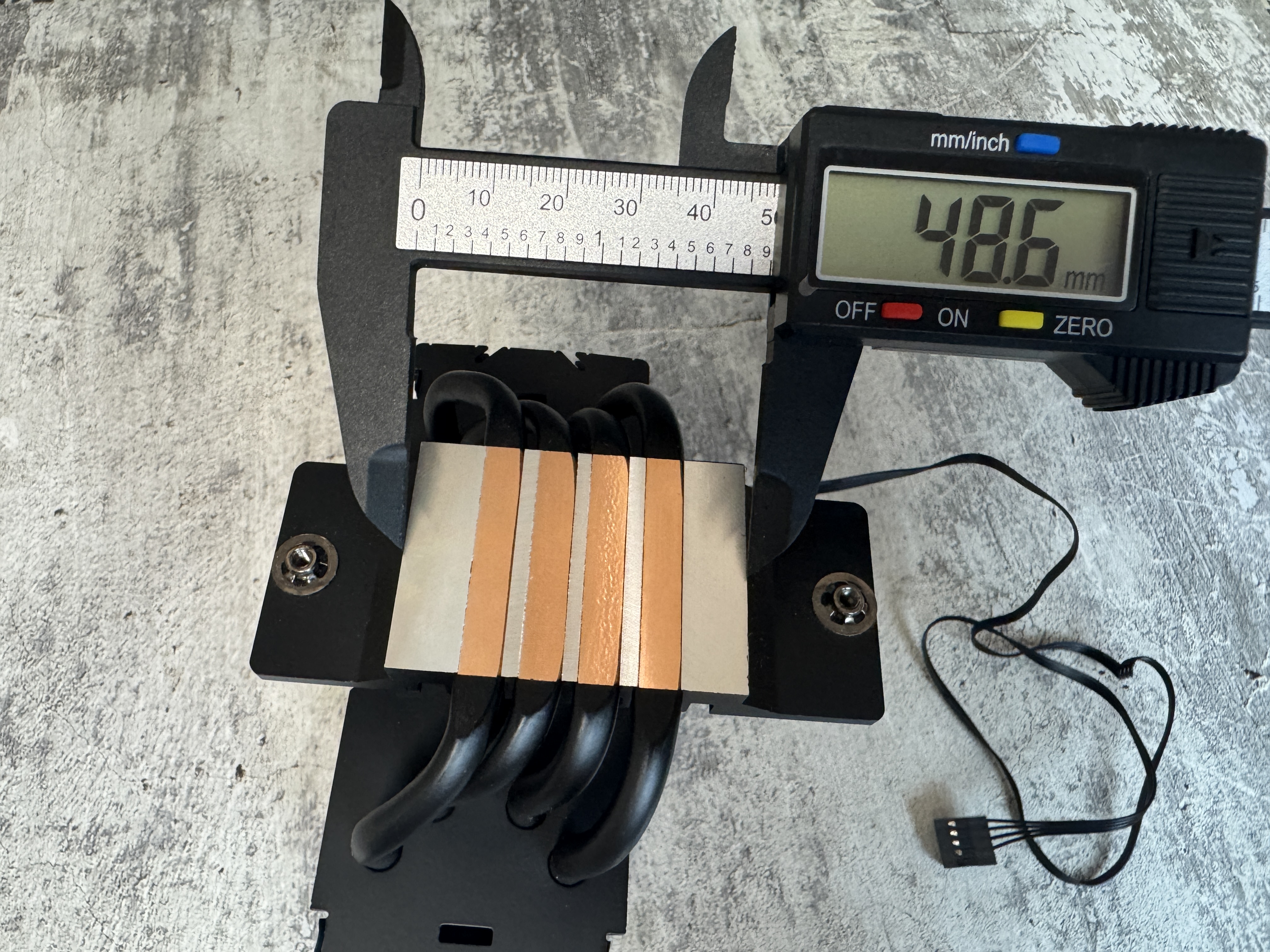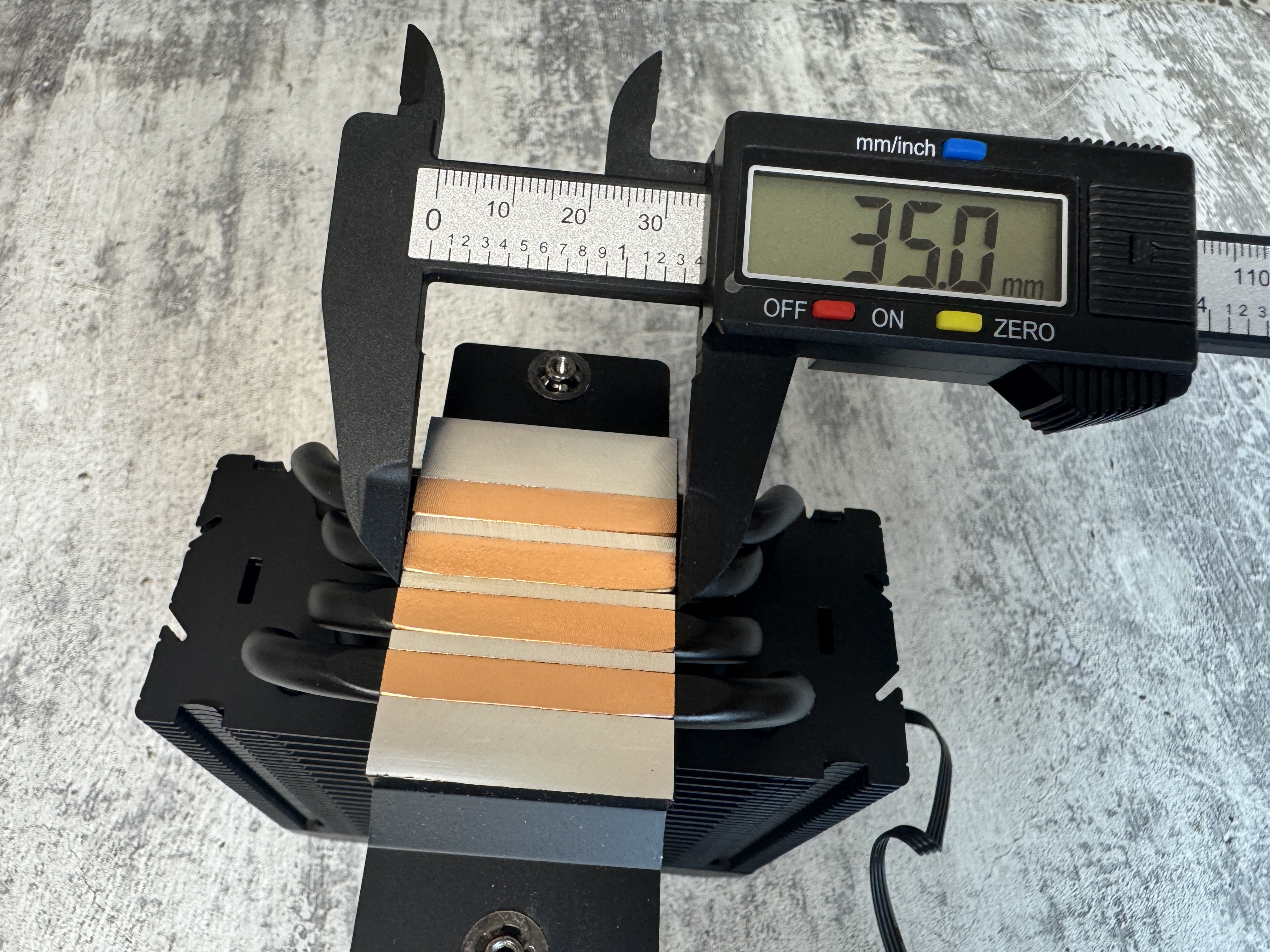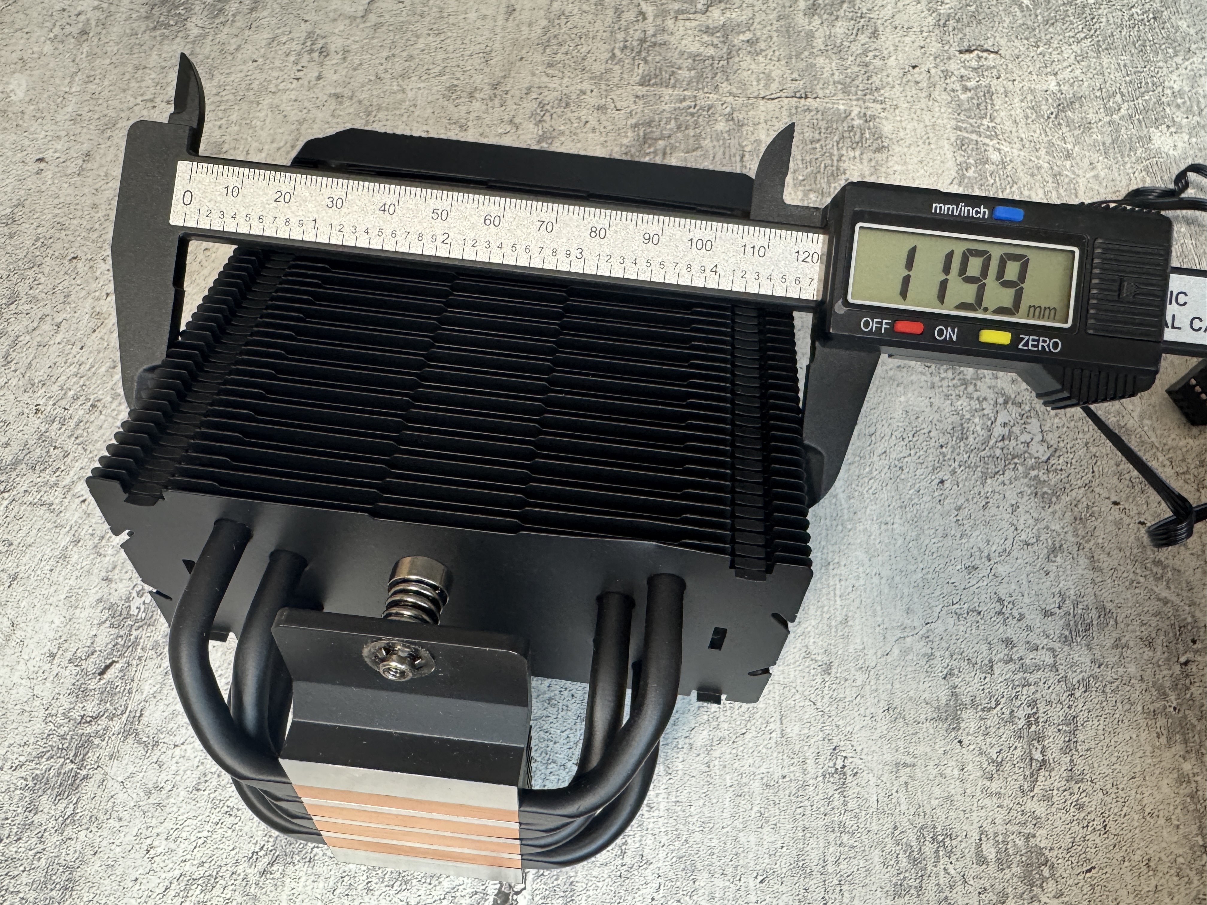 Размеры радиатора 153 x 49 x 119 мм, размеры контактной пластины 35 x 48.6 мм, вес 320 грамм.