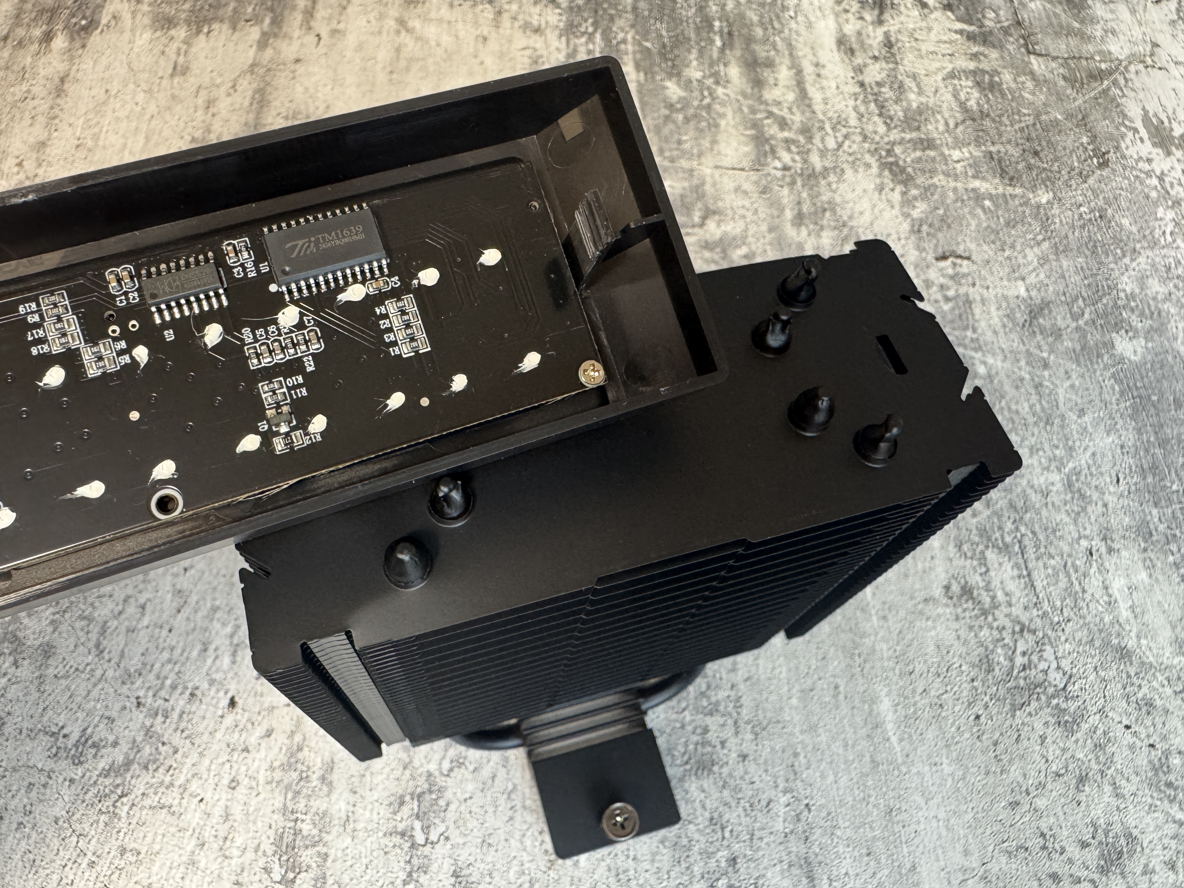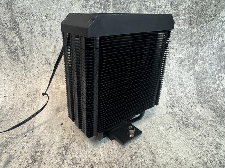 Воздушный процессорный кулер ALSEYE Q120S Plus представлен как в черном, так и в белом цвете и поддерживает все современные сокеты как от Intel, так и от AMD. В моем случае это именно черная модель с черным вентилятором и черным радиатором. Все пластины и тепловые трубки окрашены в черный цвет при помощи порошковой краски. Радиатор использует всего 4 тепловые трубки, которые запрессованы по технологии прямого контакта в основную контактную пластину радиатора. Благодаря хорошей фрезеровке, поверхность контактной пластины не имеет изъянов и выпуклостей, а это значит, что контакт радиатора и теплораспределительной крышкой процессора будет максимально хорошим и конечно это скажется на эффективности охлаждения. Как можем увидеть сам радиатор сдвинут в левую сторону на тепловых трубках, чтобы радиатор не препятствовал установке ОЗУ. В верхней части радиатора имеется декоративная пластиковая крышка, которая также имеет дисплей для отображения параметров процессора и видеокарты. Для крепления вентилятора используются стандартные металлические скобы.