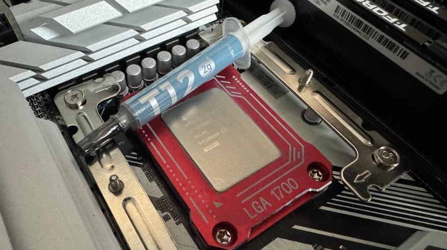 После тестировании кулера с комплектной термопастой мы снимаем кулер, убираем термопасту и наносим уже новую термопасту ALSEYE T12, которая появилась совсем недавно на рынке и зарекомендовала себя достаточно хорошо.