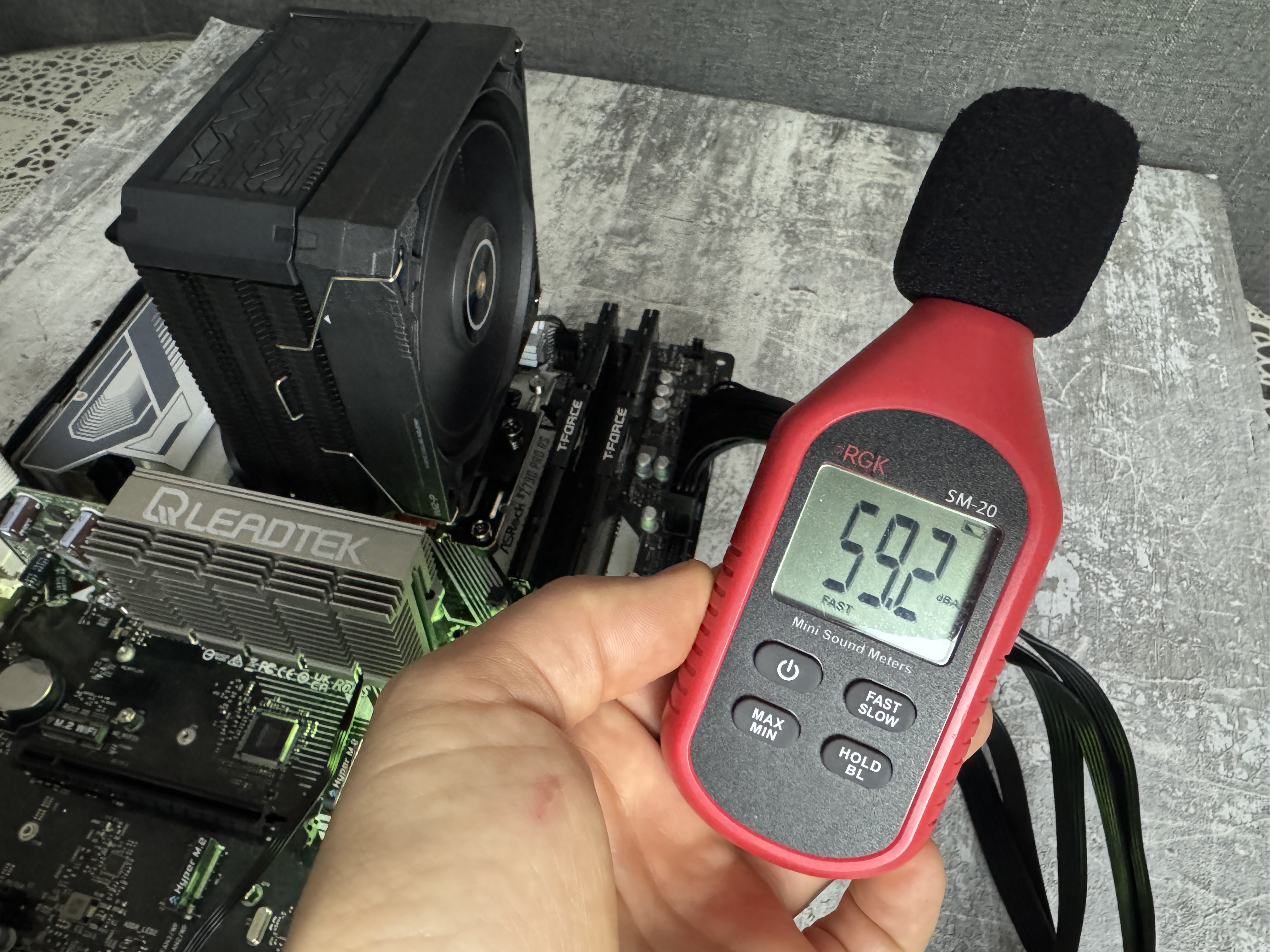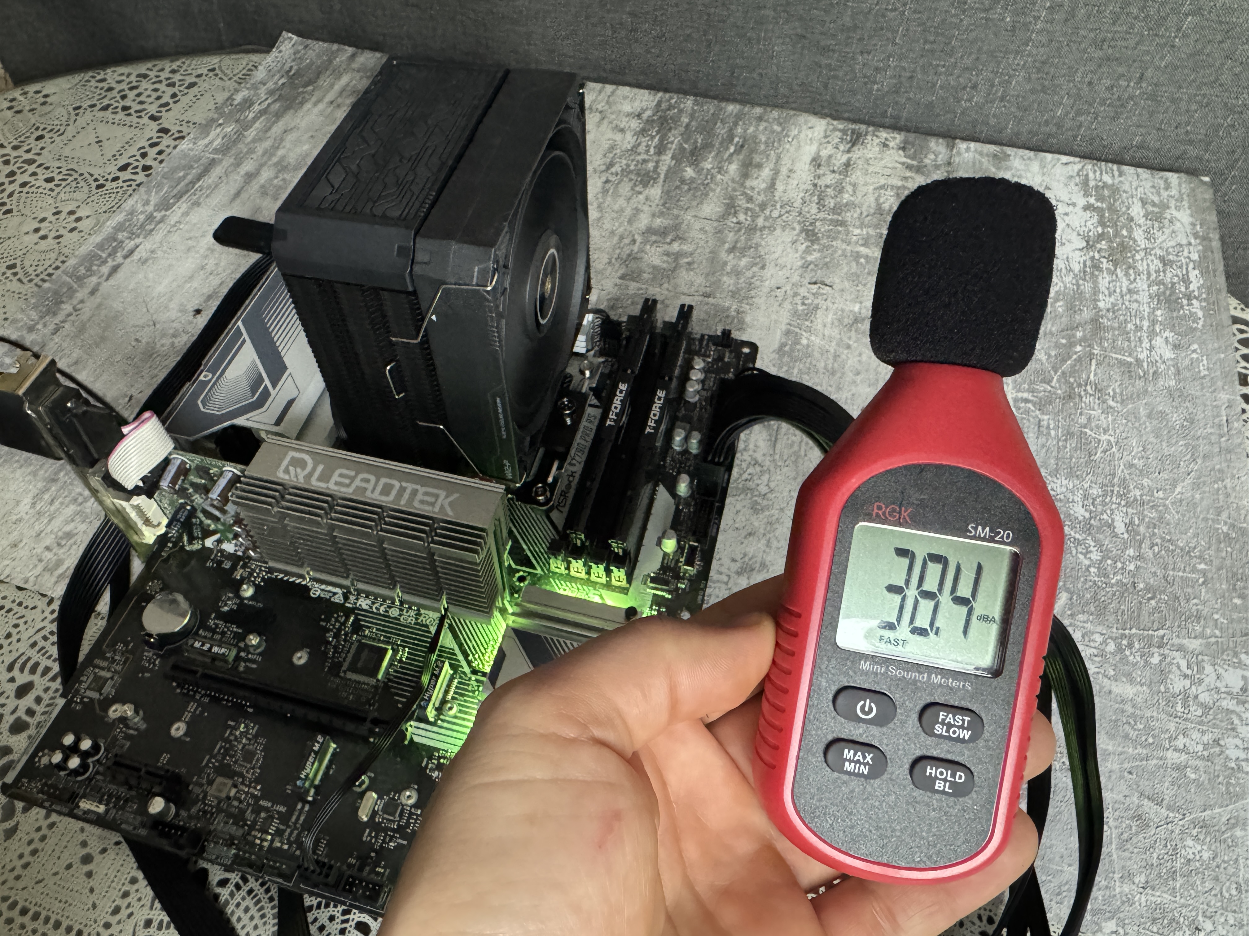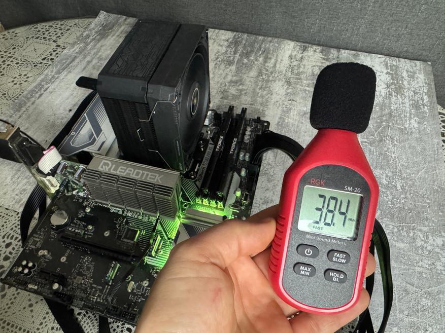 При минимальных 900 оборотах уровень шума составляет 38 dB и вентилятор работает очень тихо, а вот с максимальными 3000 оборотами уровень шума значительно увеличился до 59 dB. Самые оптимальные обороты для комфортного использования вентилятора по моему мнению это 2200 оборотов в минуту.