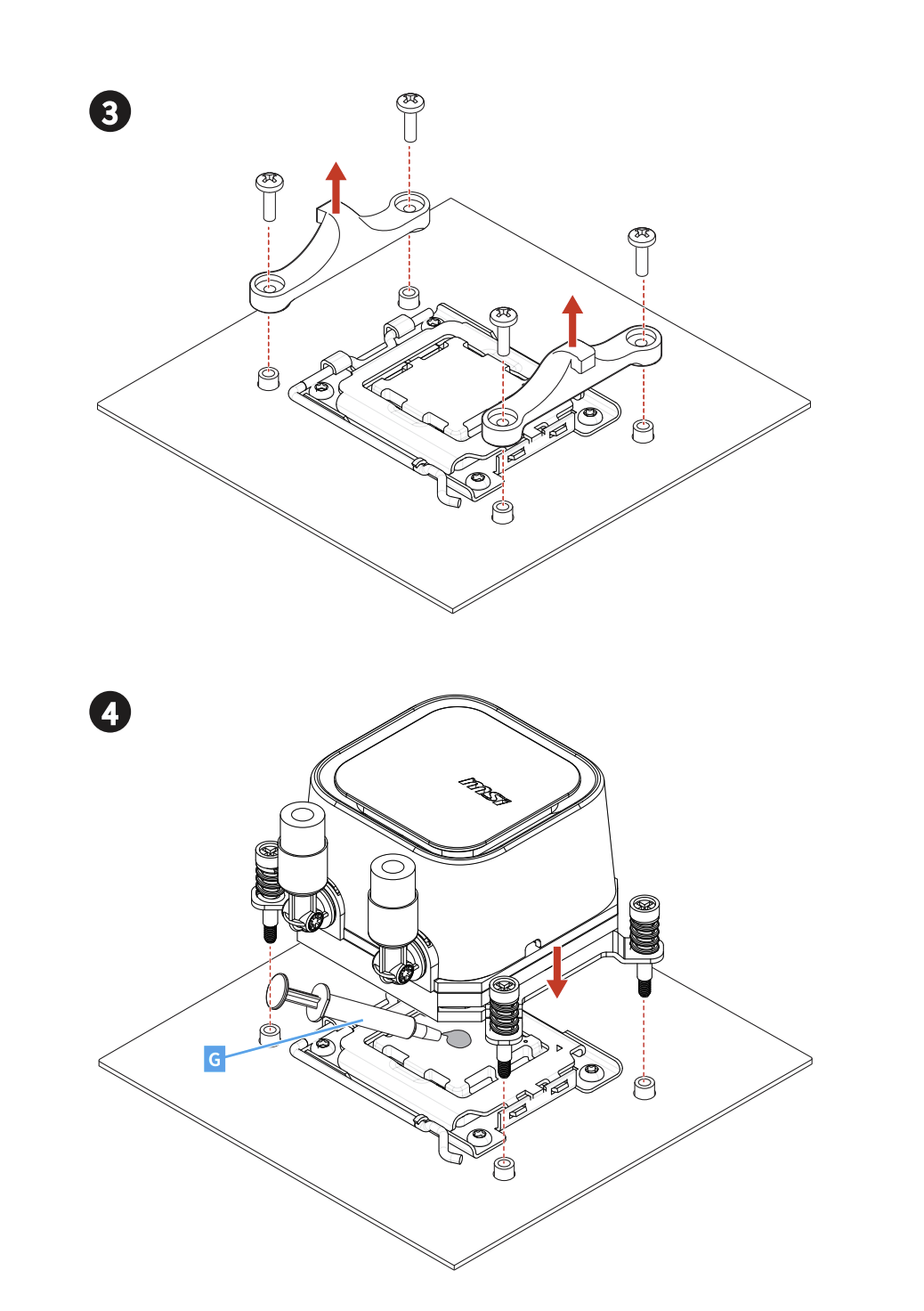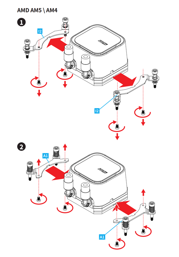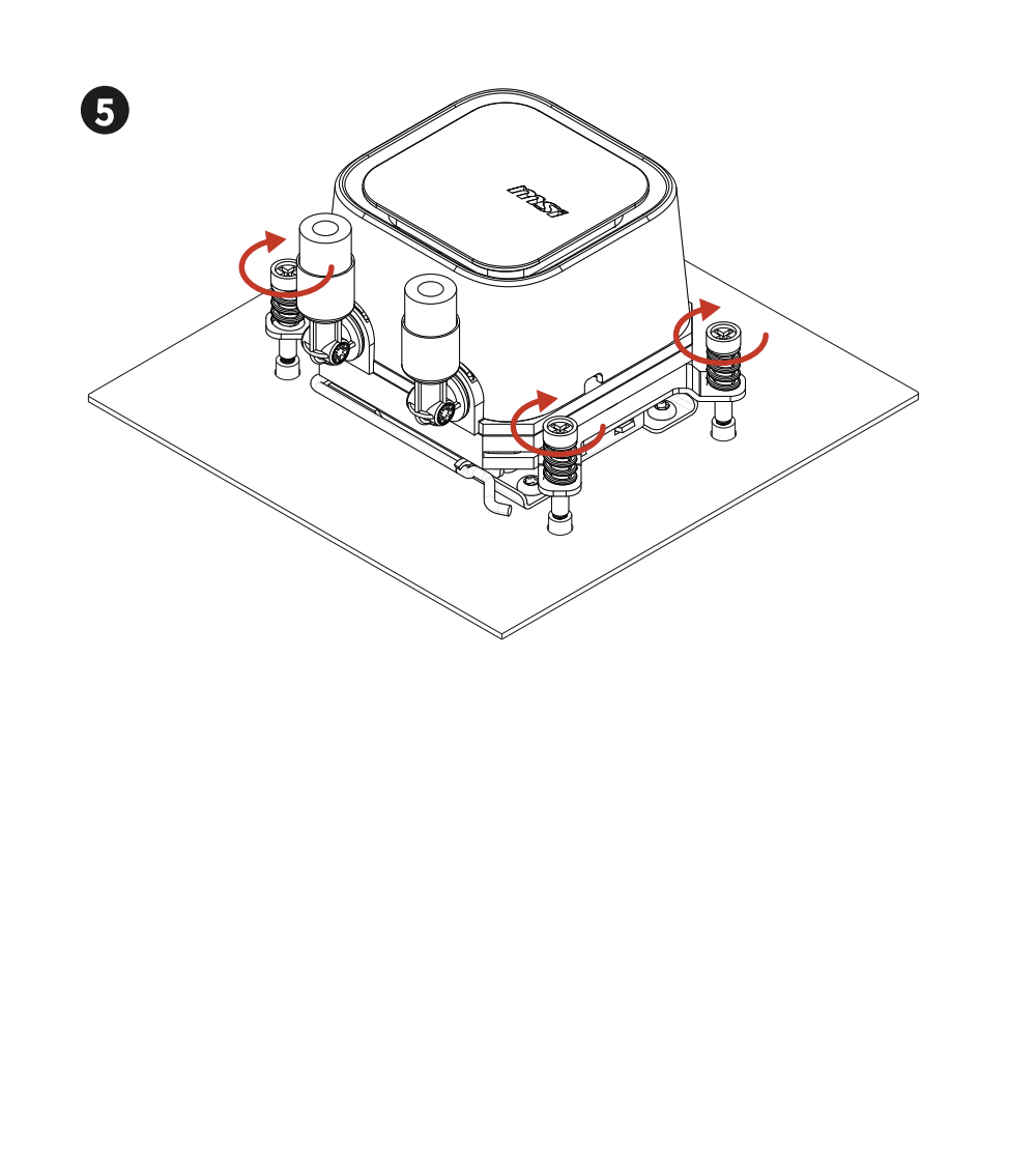 Монтаж системы охлаждения MSI MAG CoreLiquid A13 не требует специальных навыков благодаря продуманной предсборке. Основные компоненты — водоблок с предустановленными креплениями для Intel LGA и радиатор с вентиляторами — готовы к интеграции. Пользователю достаточно зафиксировать бэкплейт на материнской плате, разместить водоблок на процессоре и затянуть прижимные винты с пружинами, обеспечивающие равномерное давление. Для работы необходима лишь крестообразная отвёртка, что делает процесс доступным даже для новичков.