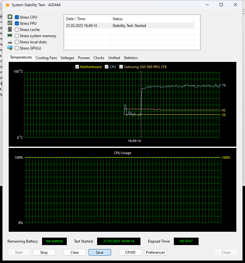 Более сложный тест запустим в программе AIDA 64. Результаты тестирования на скриншотах ниже: