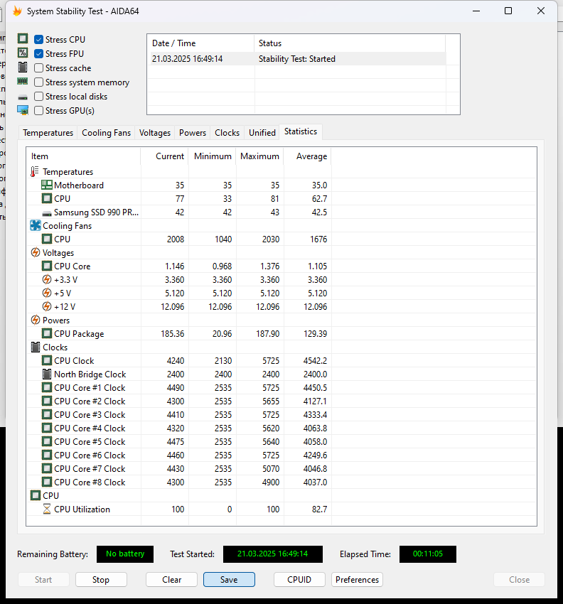 СЖО эффективно справляется с теплоотводом при мощности процессора в 185 Вт, демонстрируя стабильность в продолжительных нагрузках. Например, для процессоров уровня AMD Ryzen 7 9700X или Intel Core i5-14600K этого достаточно для работы в штатном режиме. Однако экстремальные сценарии, такие как разгон топовых CPU, требуют более производительных решений. Таким образом, система идеальна для среднебюджетных конфигураций, где важны баланс между ценой, тишиной и достаточной эффективностью.