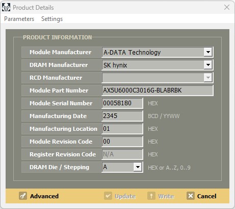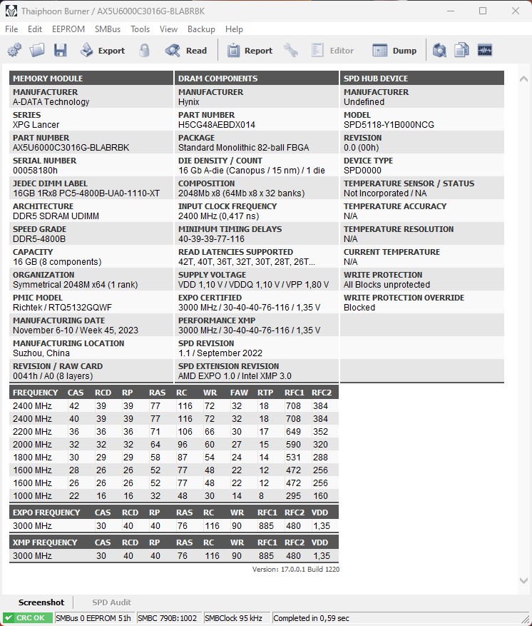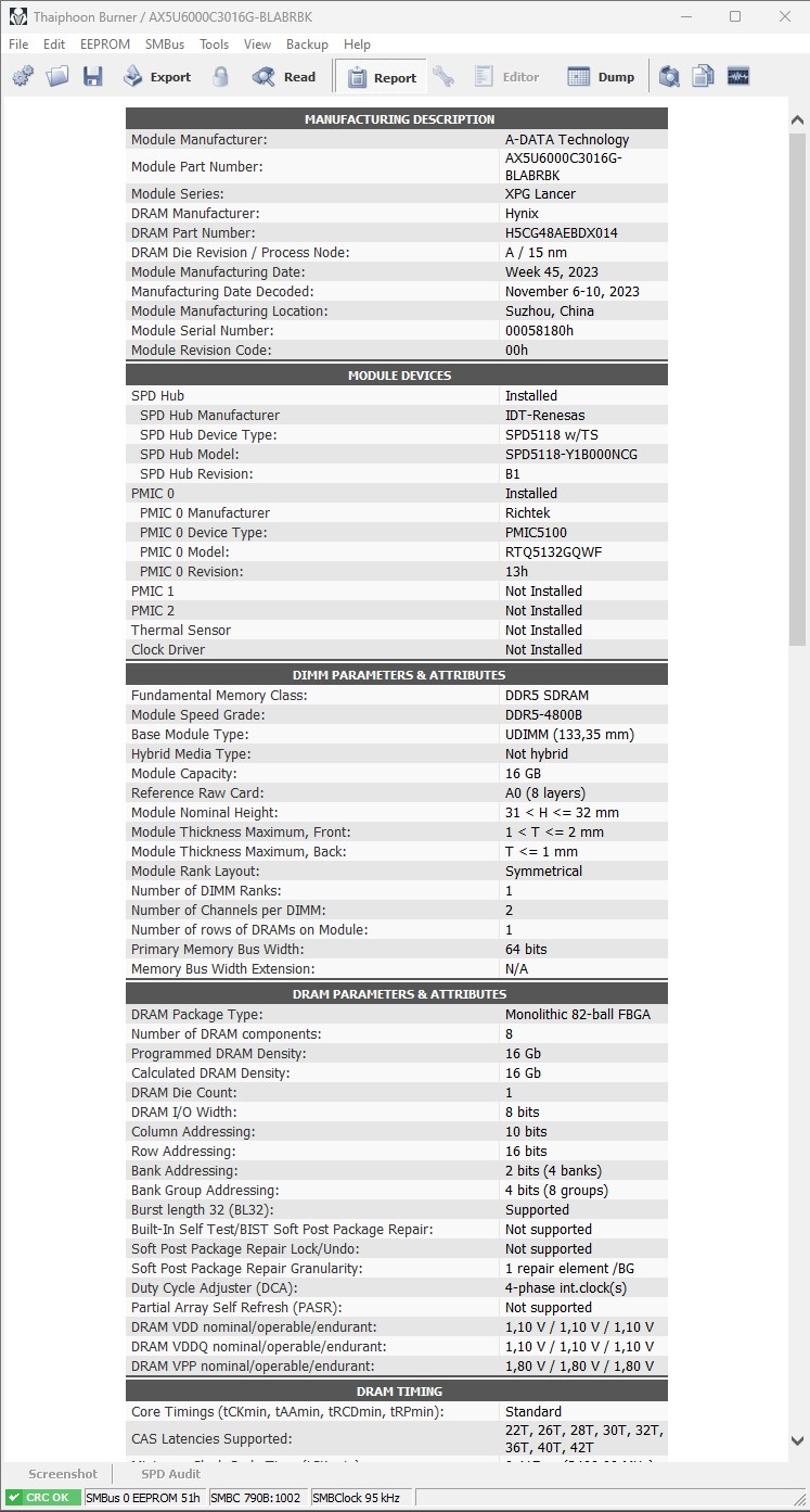 В утилите Taiphpoon Burner в комплект XPG Lancer Blade RGB используются чипы Hynix A-die.