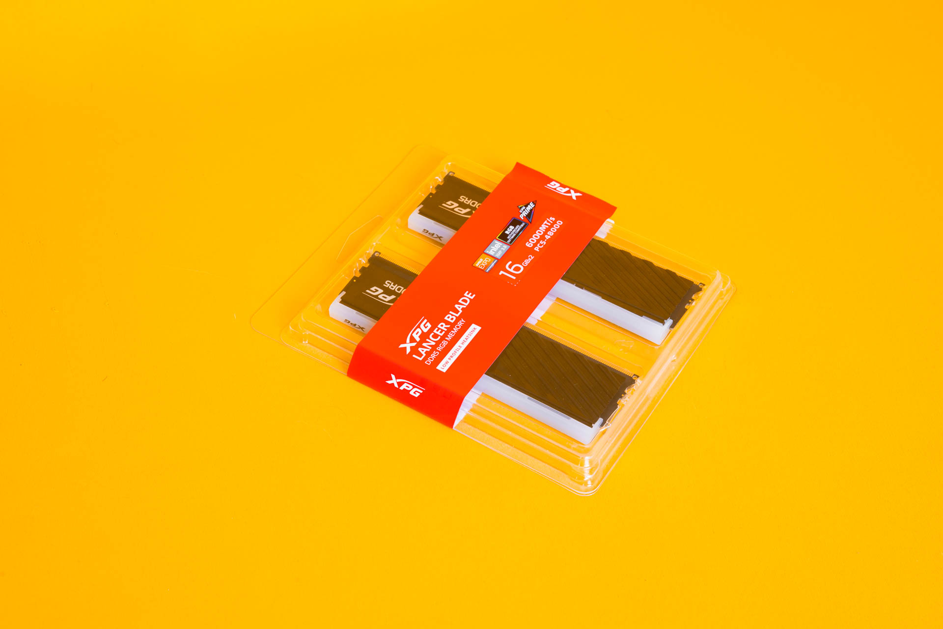 XPG Lancer Blade RGB поставляется в прозрачной пластиковой упаковке, опоясанной красной самоклеящаяся лентой, на лицевой стороне которой указана поддержка XMP и EXPO, а также возможность управлять подсветкой с помощью программного обеспечения материнских плат. На тыльной стороне ленты можно найти артикул данного комплекта оперативной памяти.